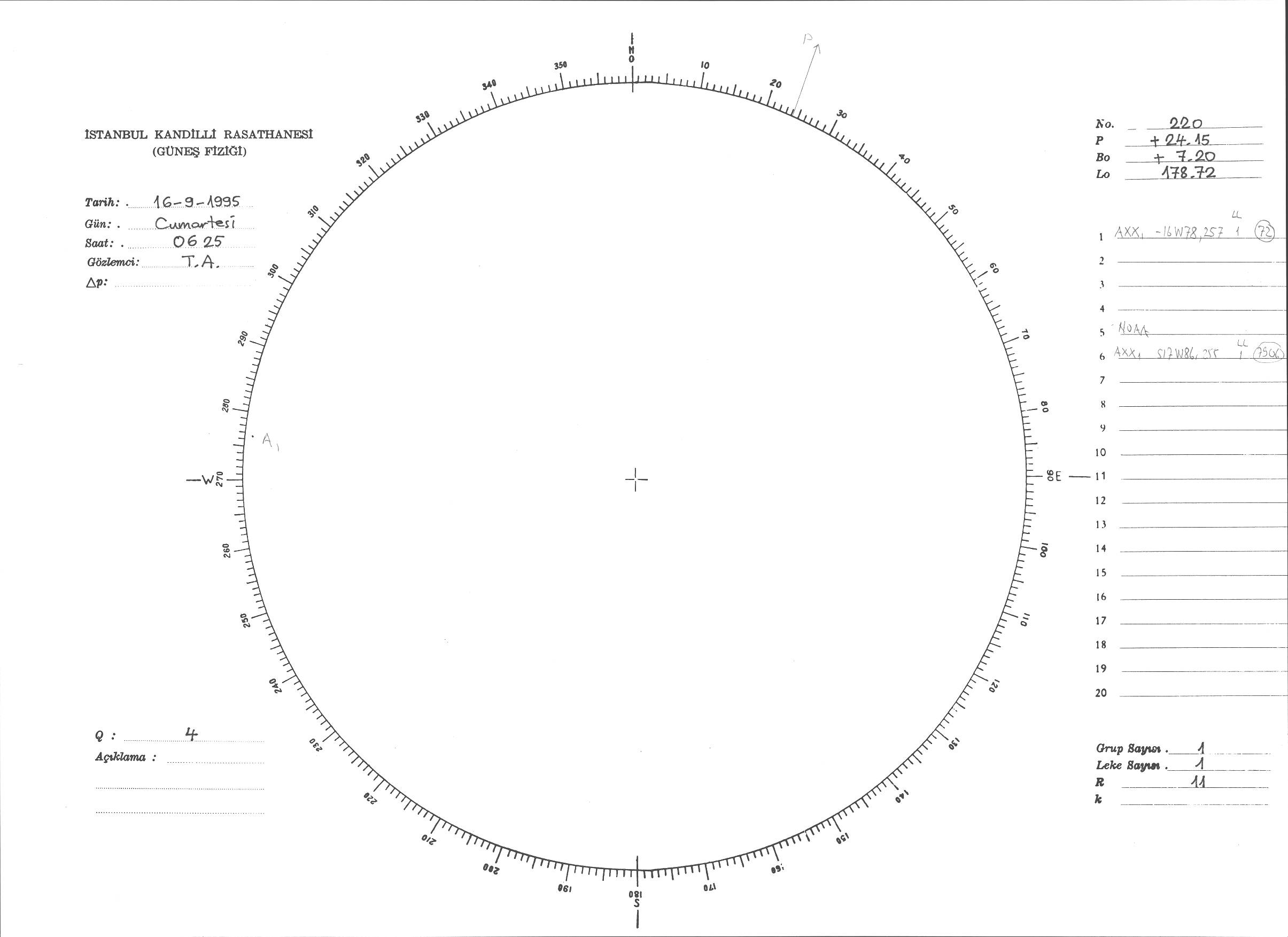 Güneş Lekesi Çizimi - 16.09.1995
