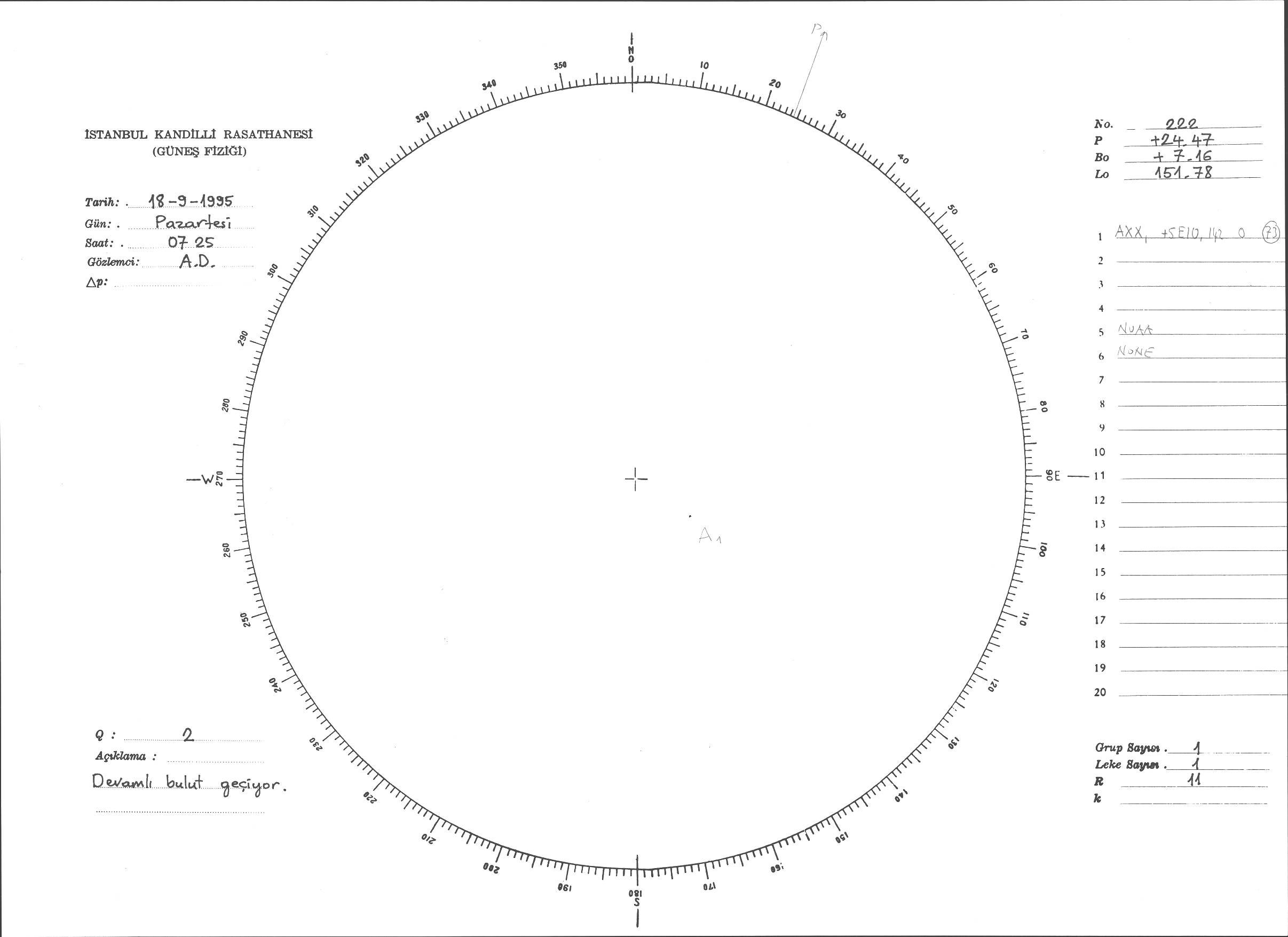 Güneş Lekesi Çizimi - 18.09.1995