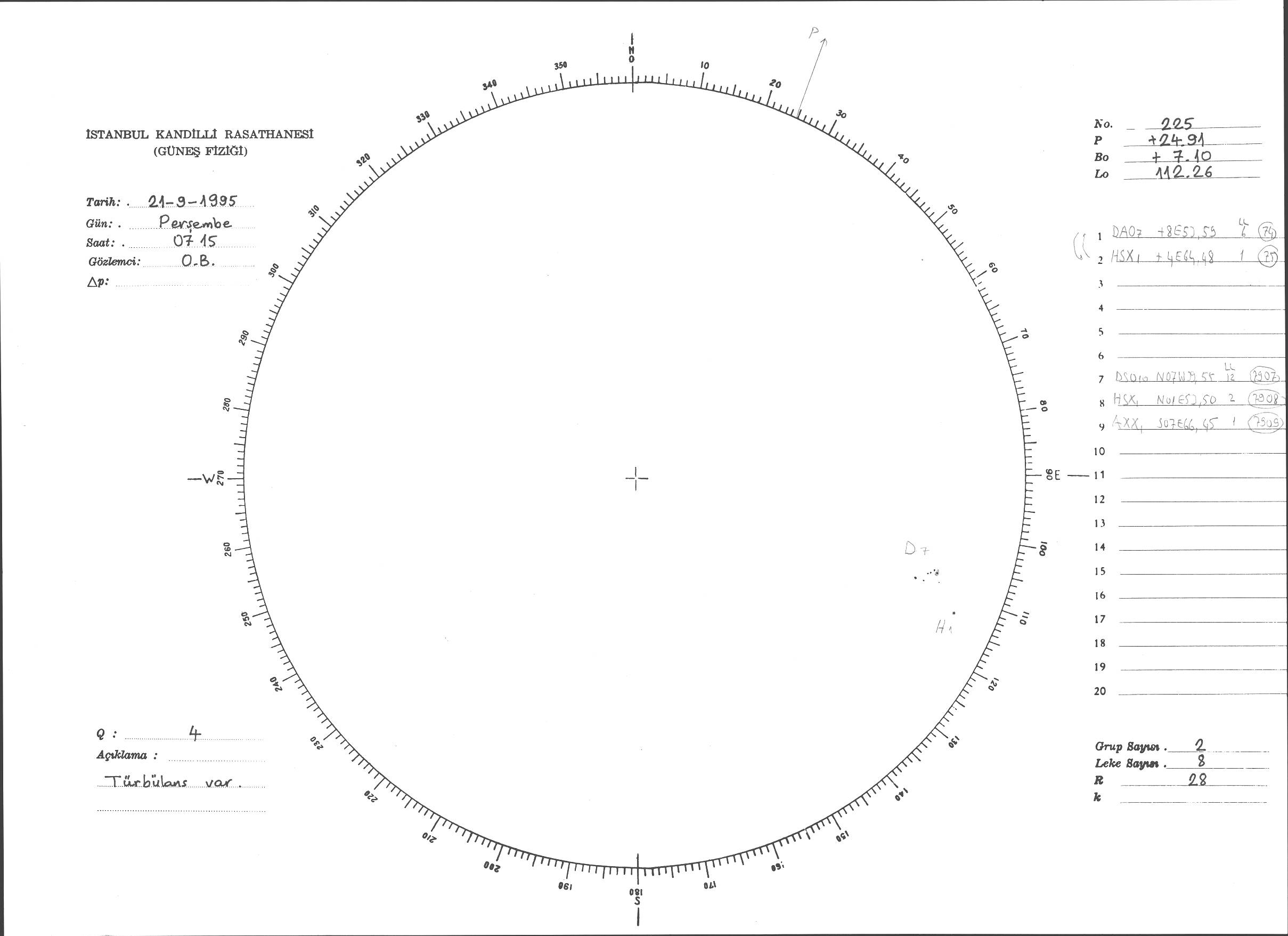 Güneş Lekesi Çizimi - 21.09.1995