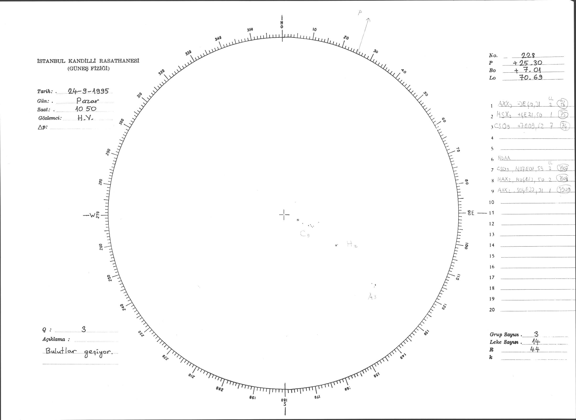Güneş Lekesi Çizimi - 24.09.1995