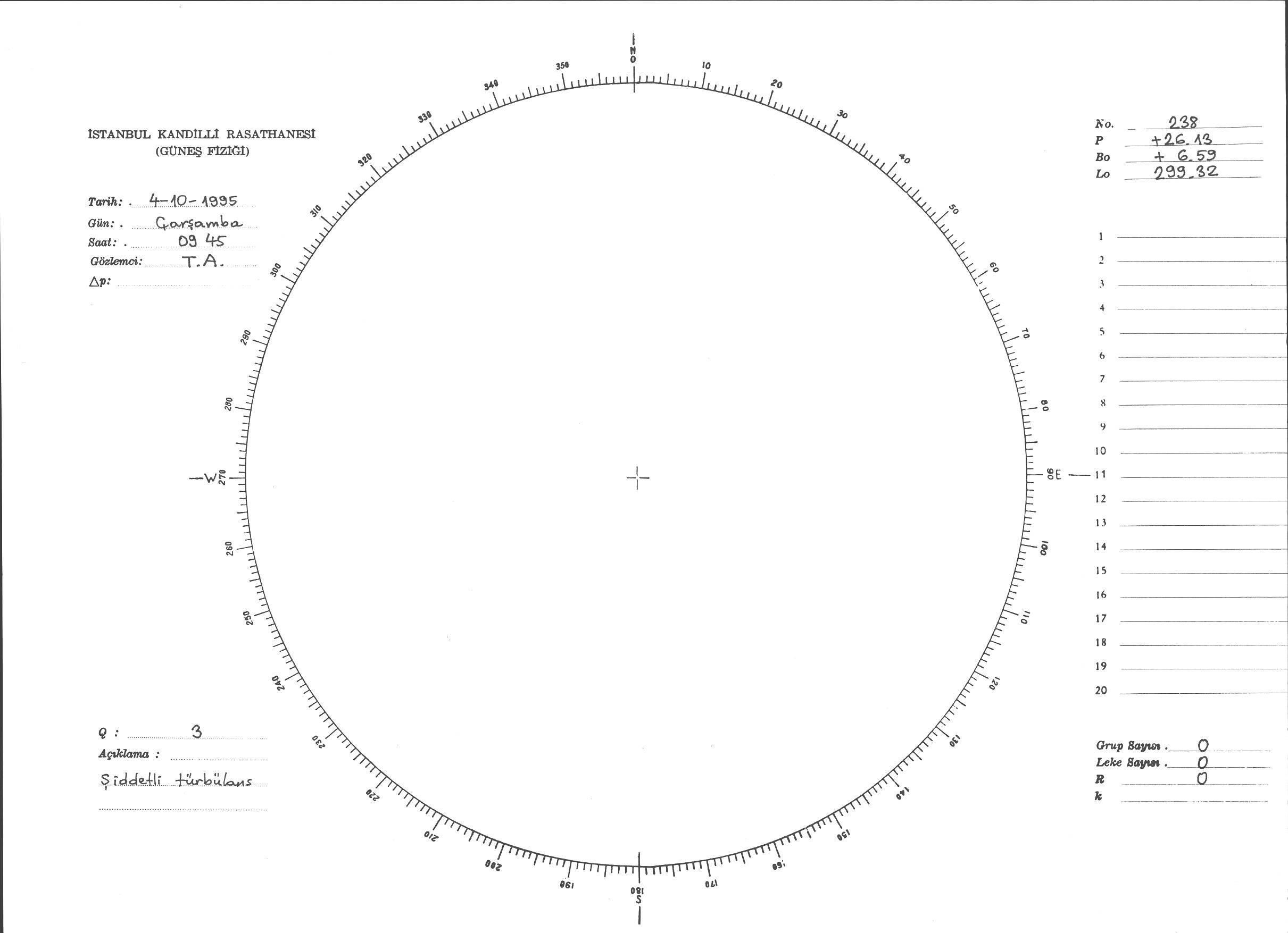 Güneş Lekesi Çizimi - 04.10.1995