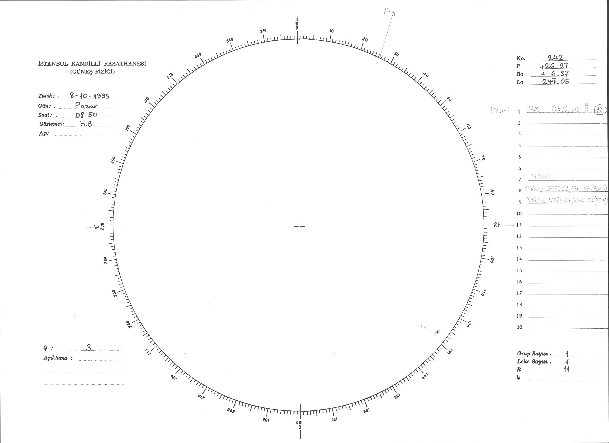 Güneş Lekesi Çizimi - 08.10.1995