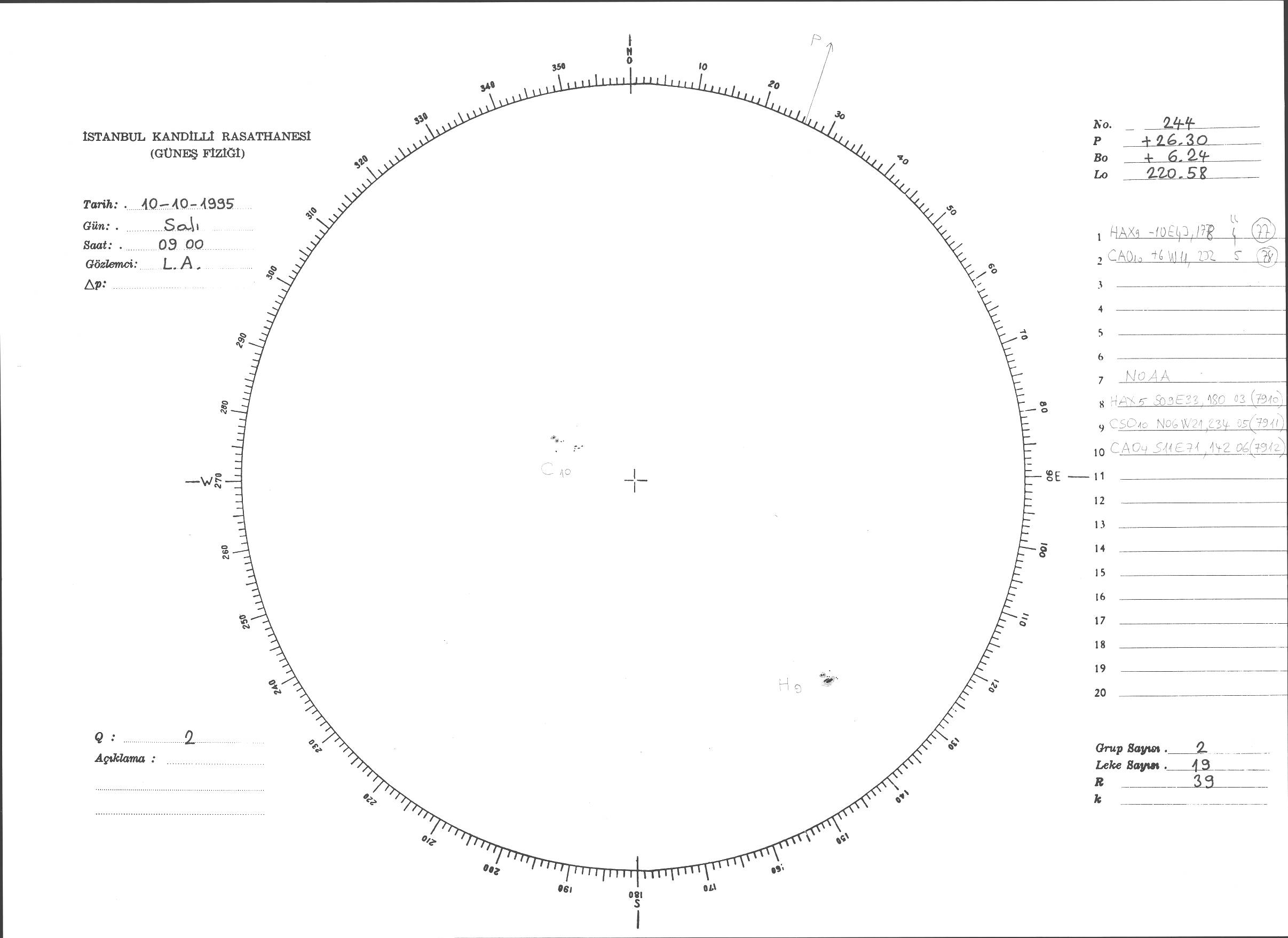 Güneş Lekesi Çizimi - 10.10.1995