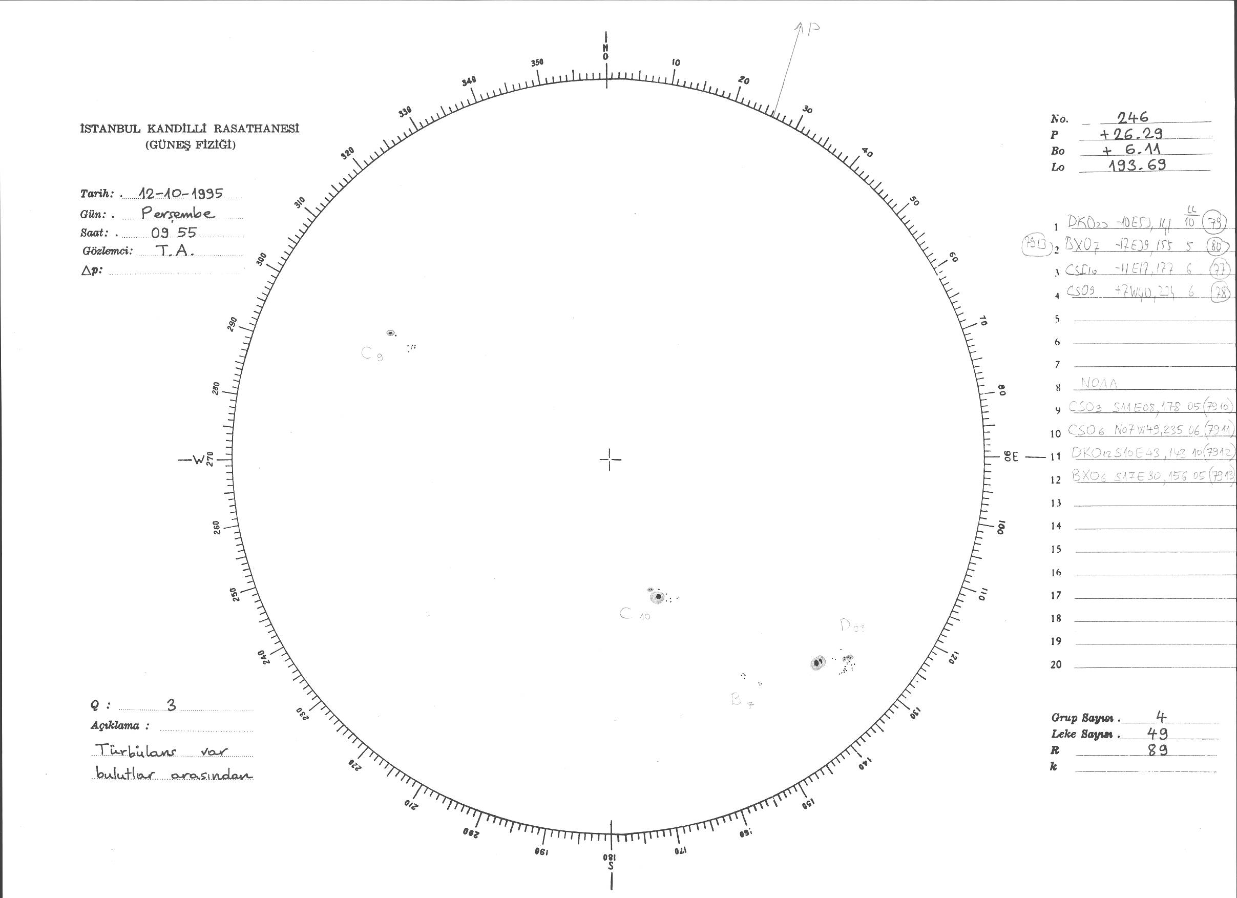 Güneş Lekesi Çizimi - 12.10.1995