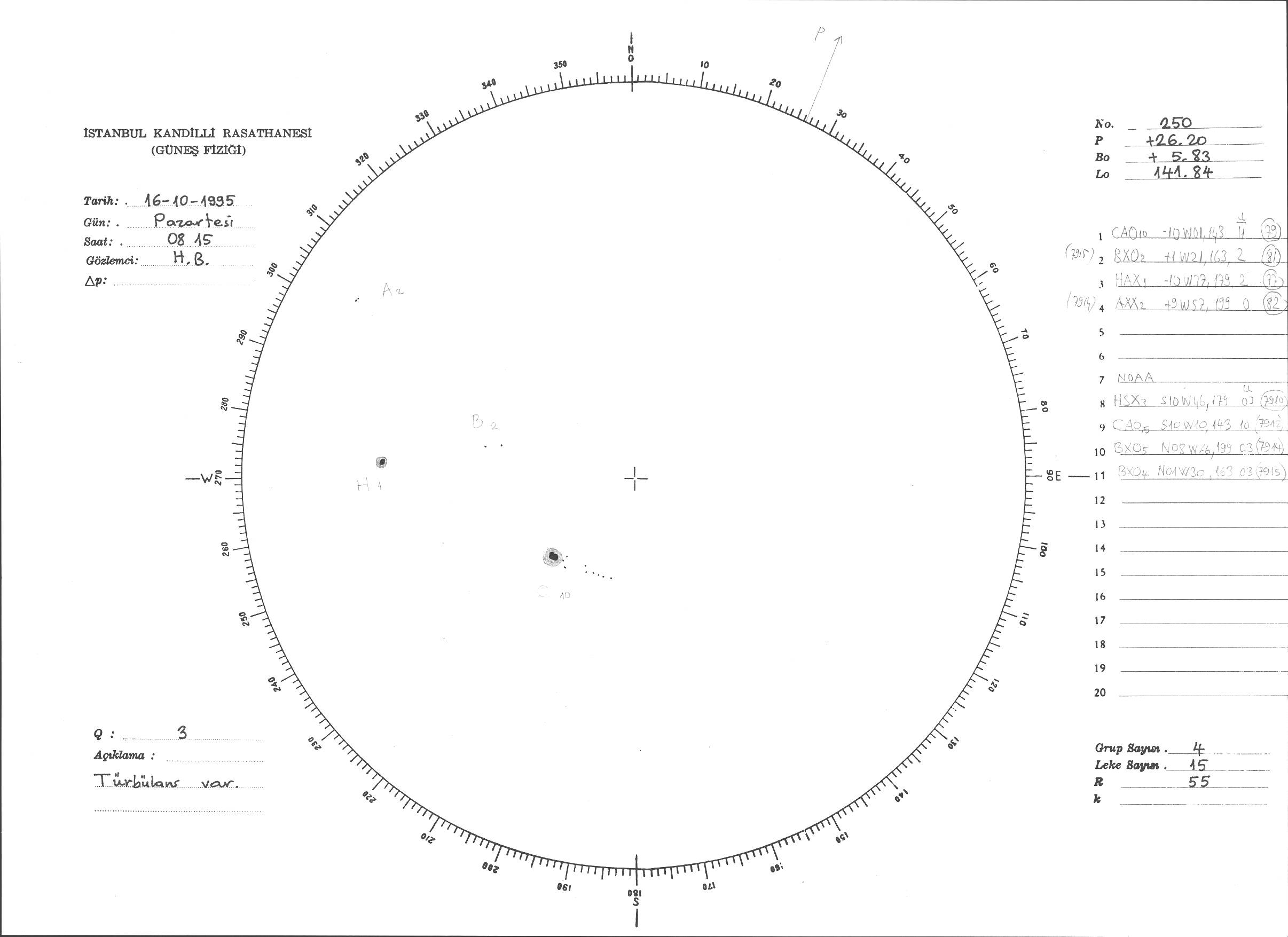 Güneş Lekesi Çizimi - 16.10.1995