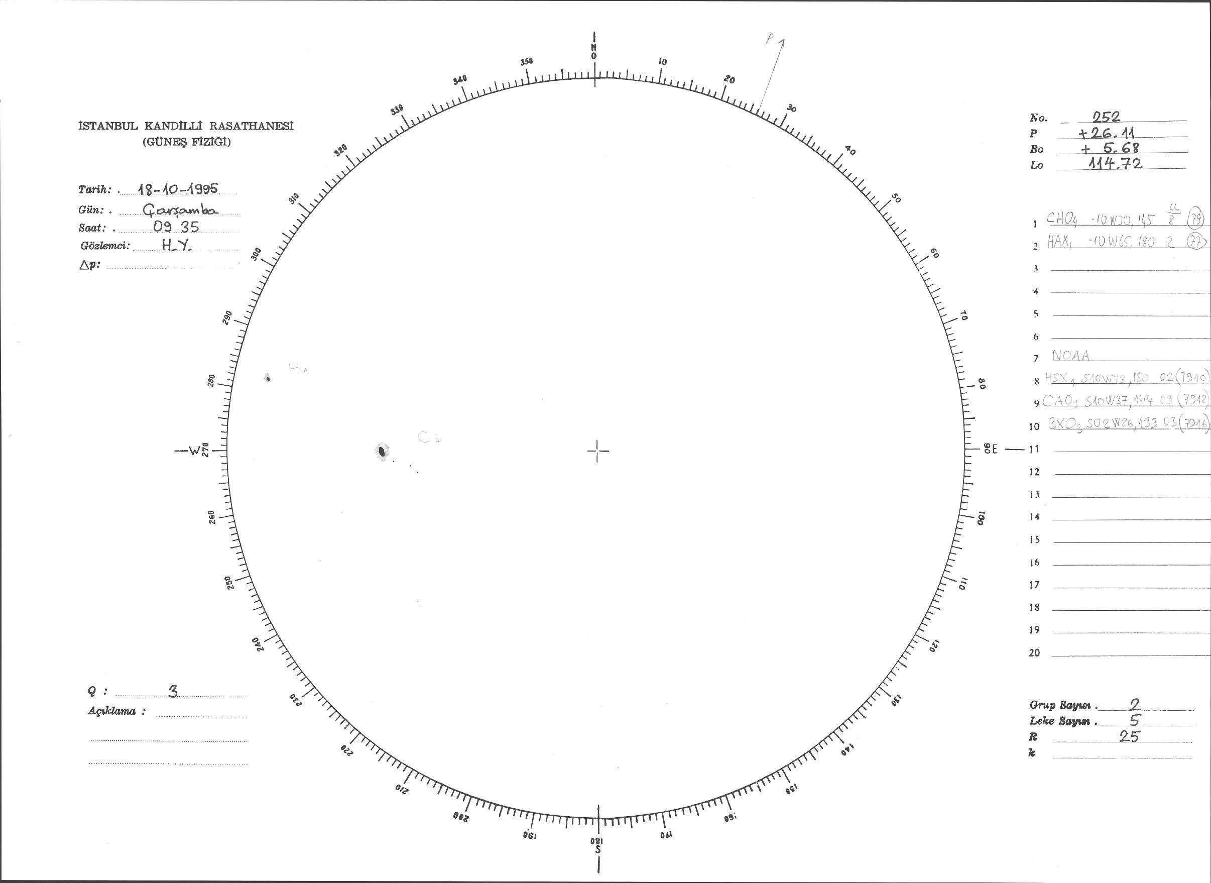 Güneş Lekesi Çizimi - 18.10.1995