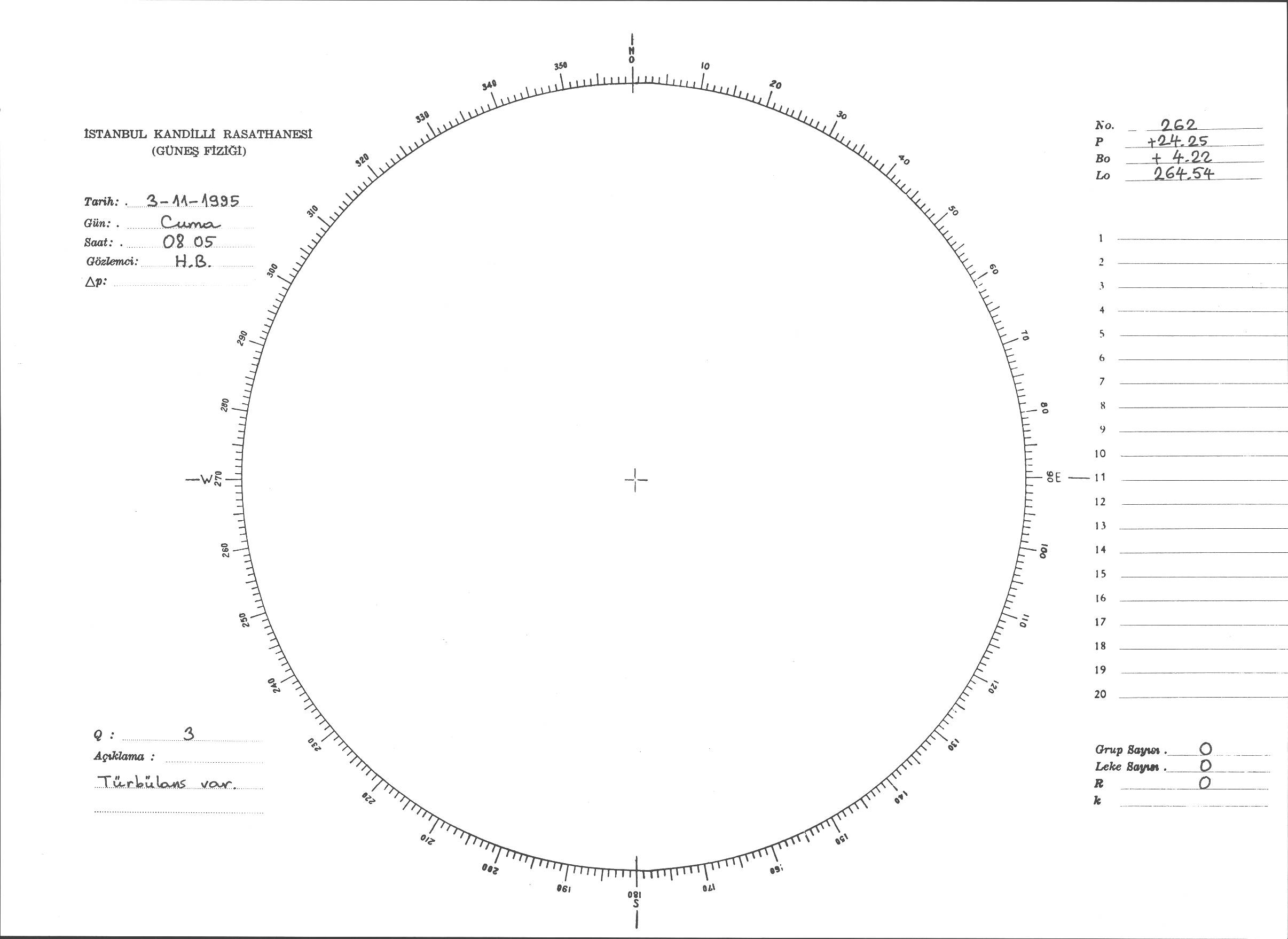 Güneş Lekesi Çizimi - 03.11.1995
