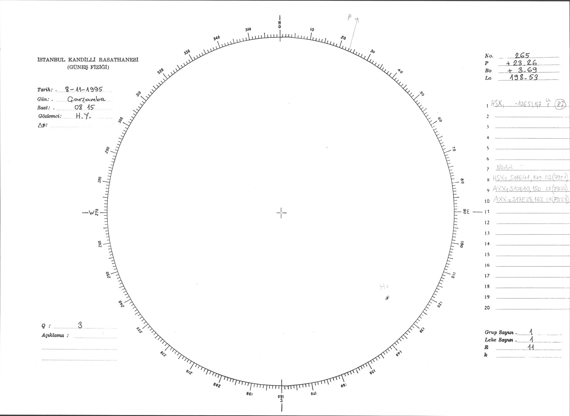 Güneş Lekesi Çizimi - 08.11.1995