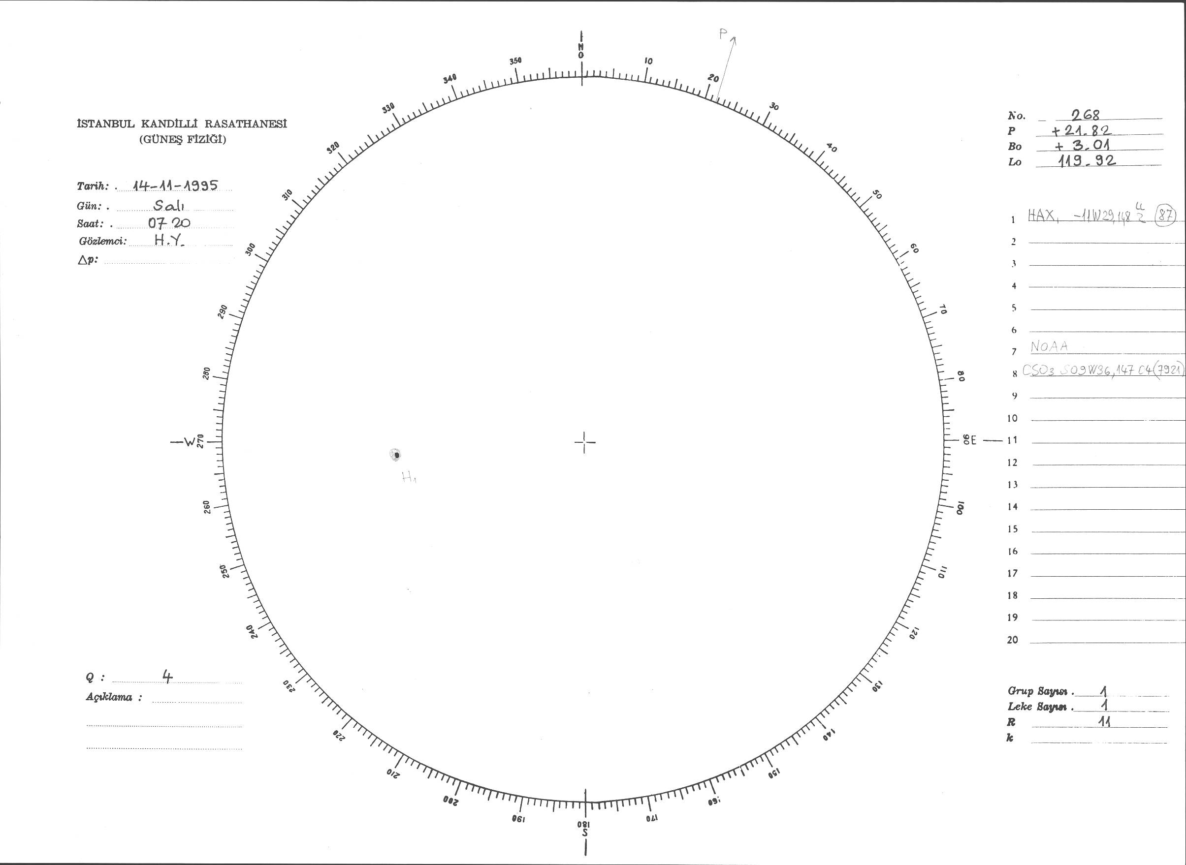 Güneş Lekesi Çizimi - 14.11.1995