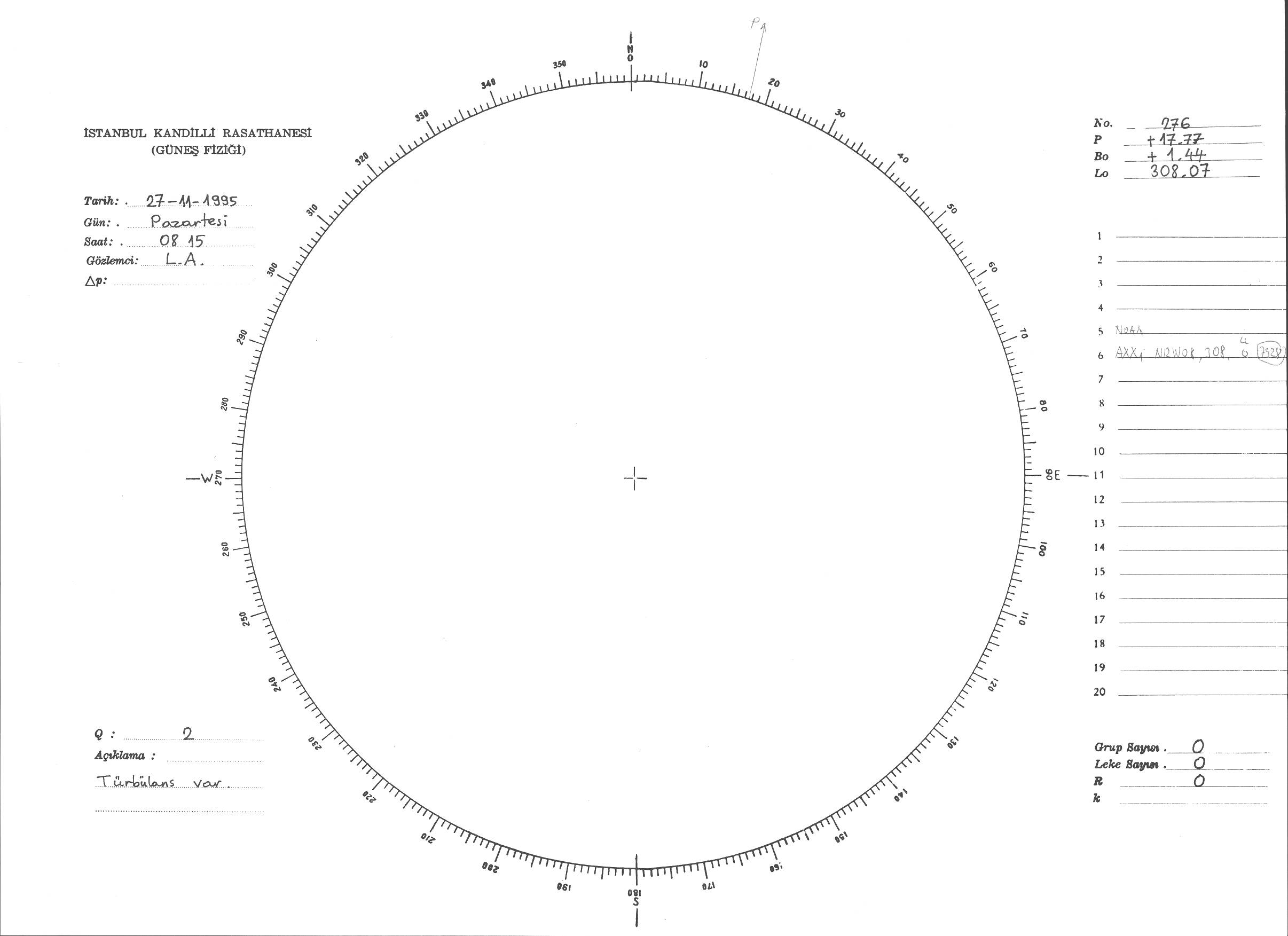 Güneş Lekesi Çizimi - 27.11.1995