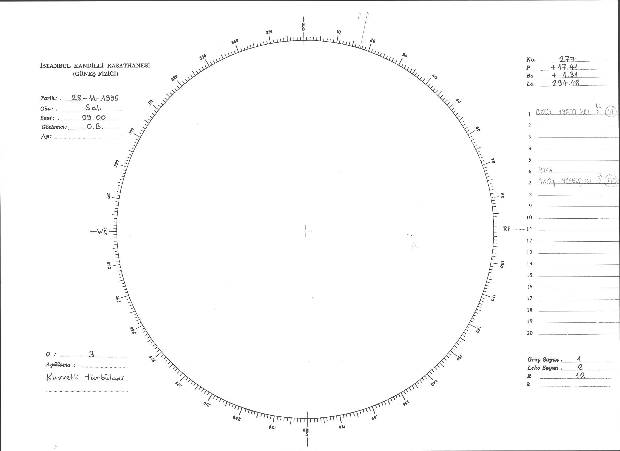 Güneş Lekesi Çizimi - 28.11.1995