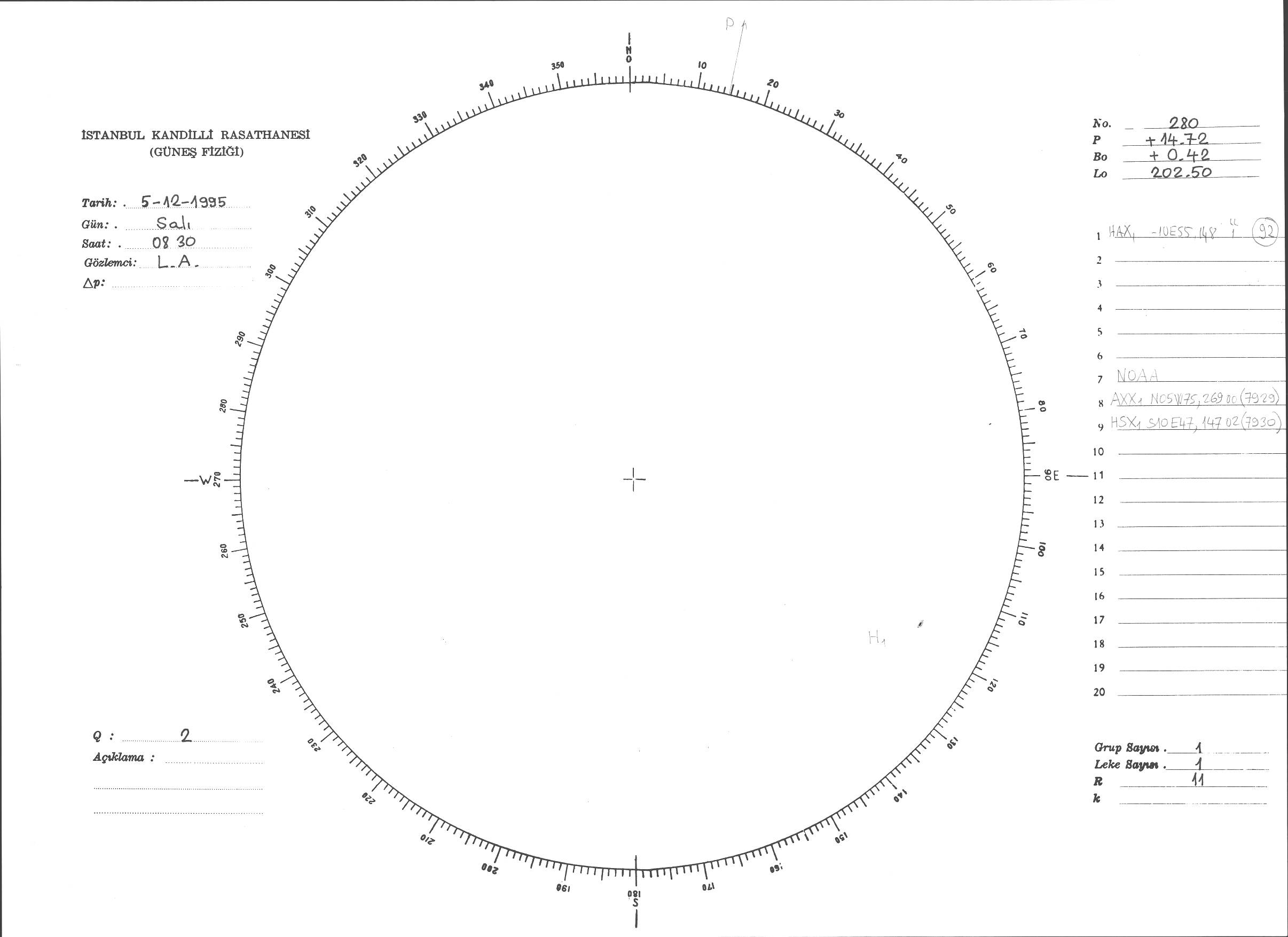 Güneş Lekesi Çizimi - 05.12.1995