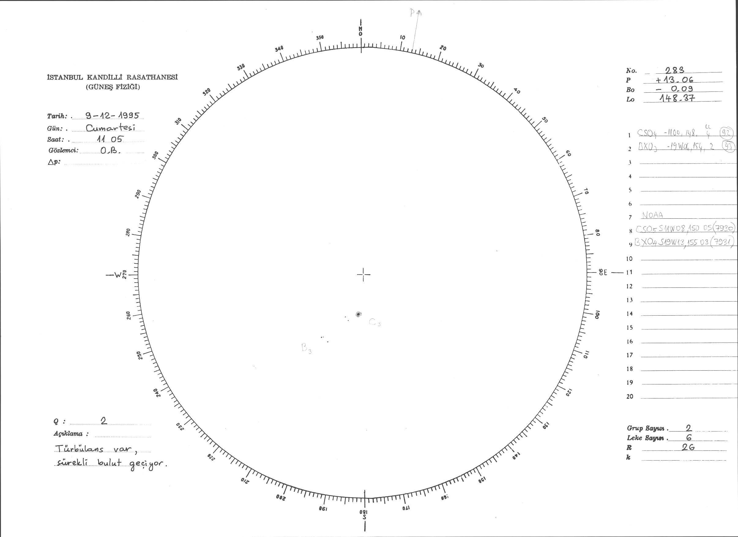 Güneş Lekesi Çizimi - 09.12.1995
