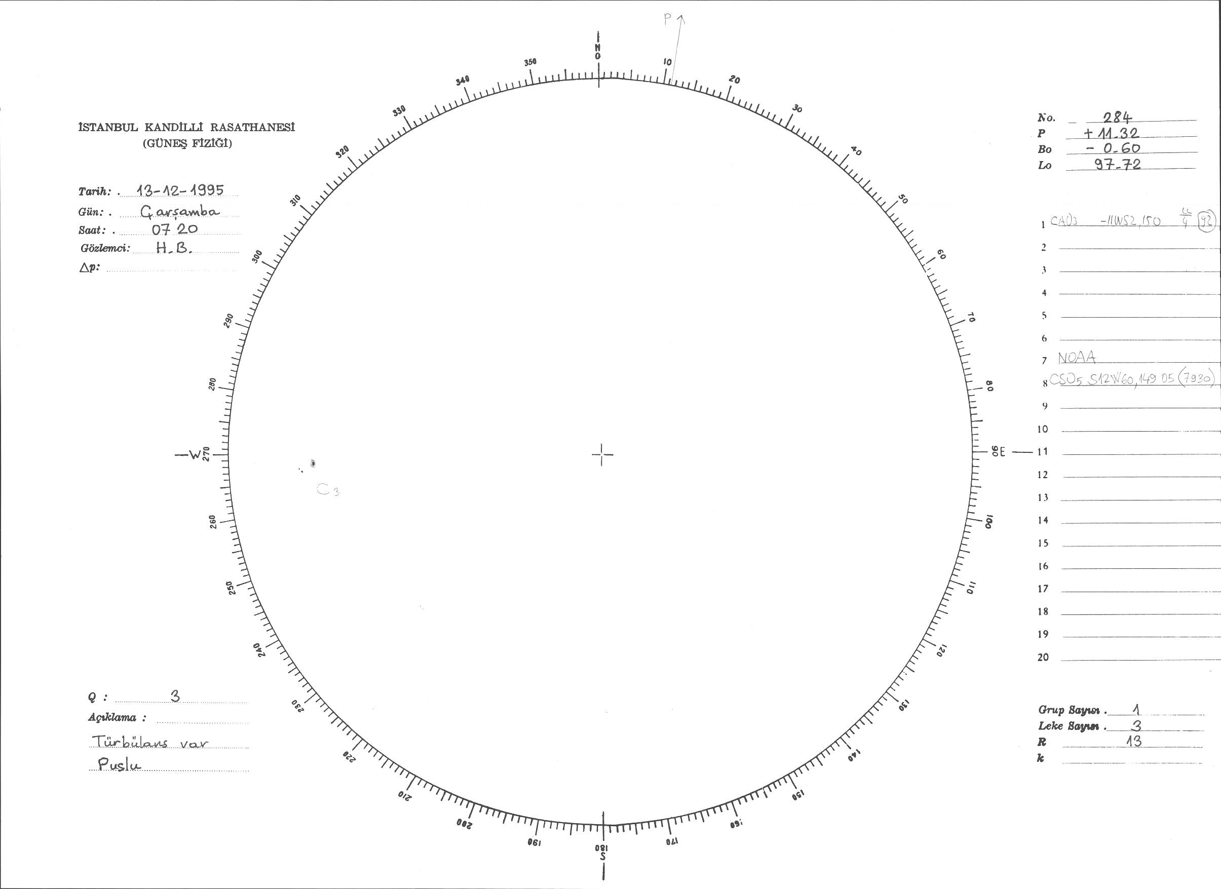 Güneş Lekesi Çizimi - 13.12.1995