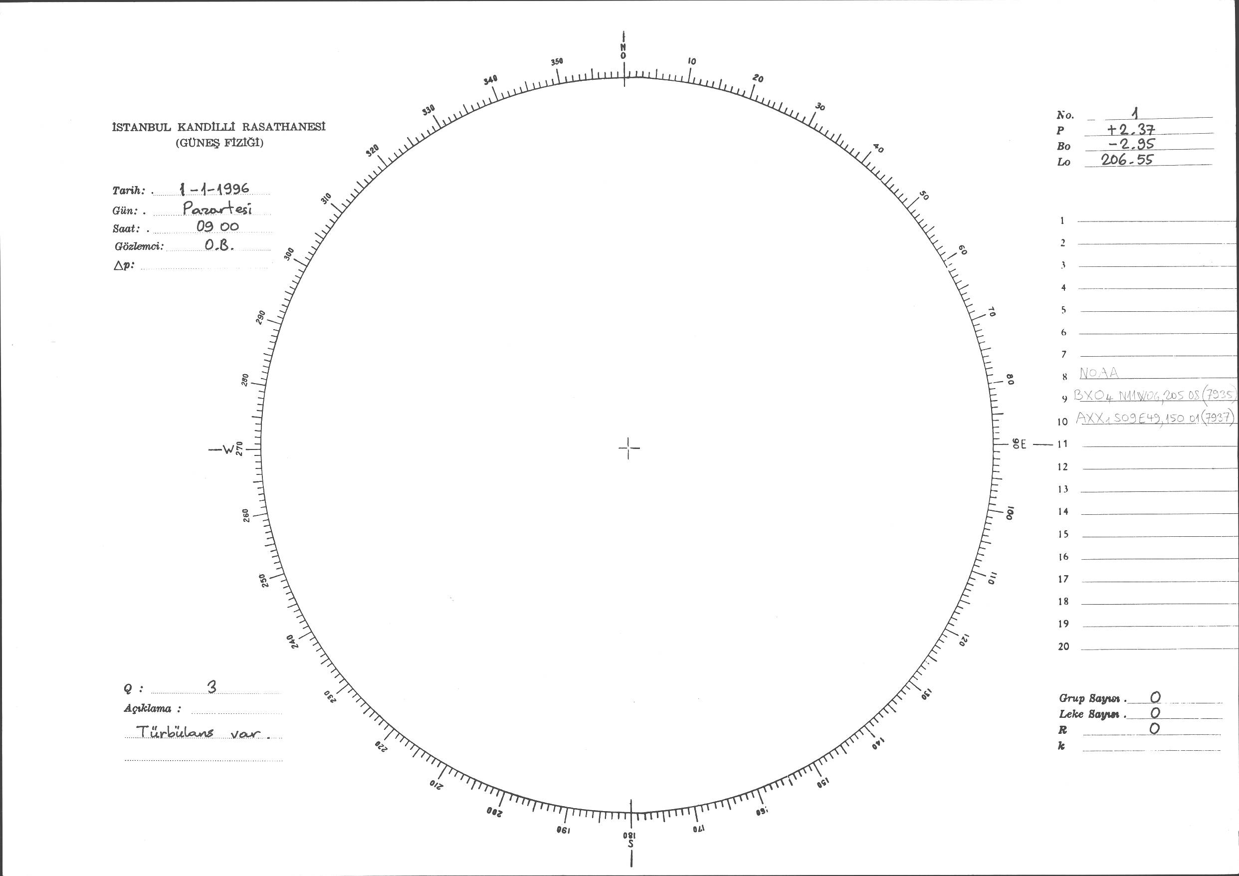 Güneş Lekesi Çizimi - 01.01.1996