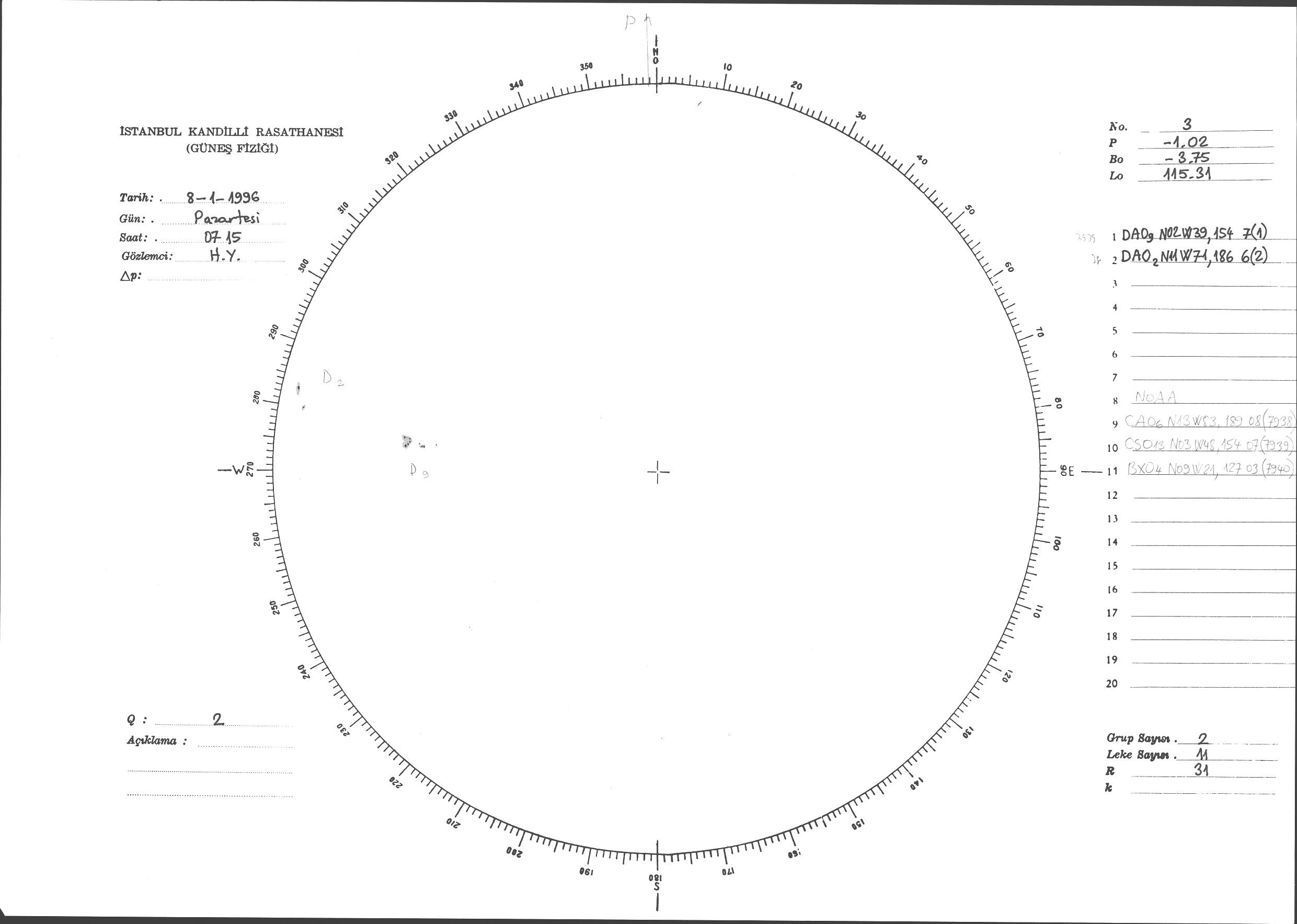 Güneş Lekesi Çizimi - 08.01.1996