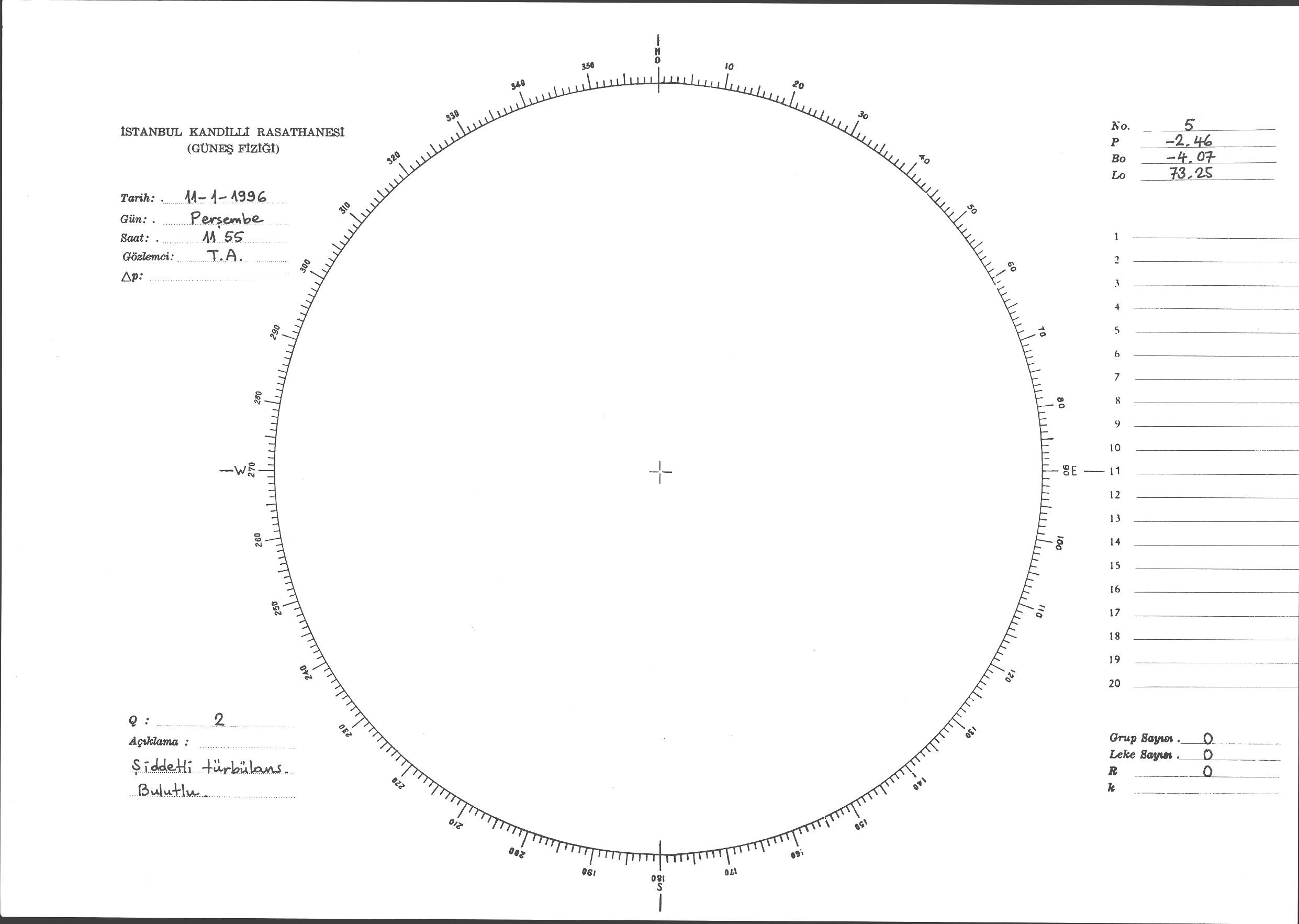 Güneş Lekesi Çizimi - 11.01.1996
