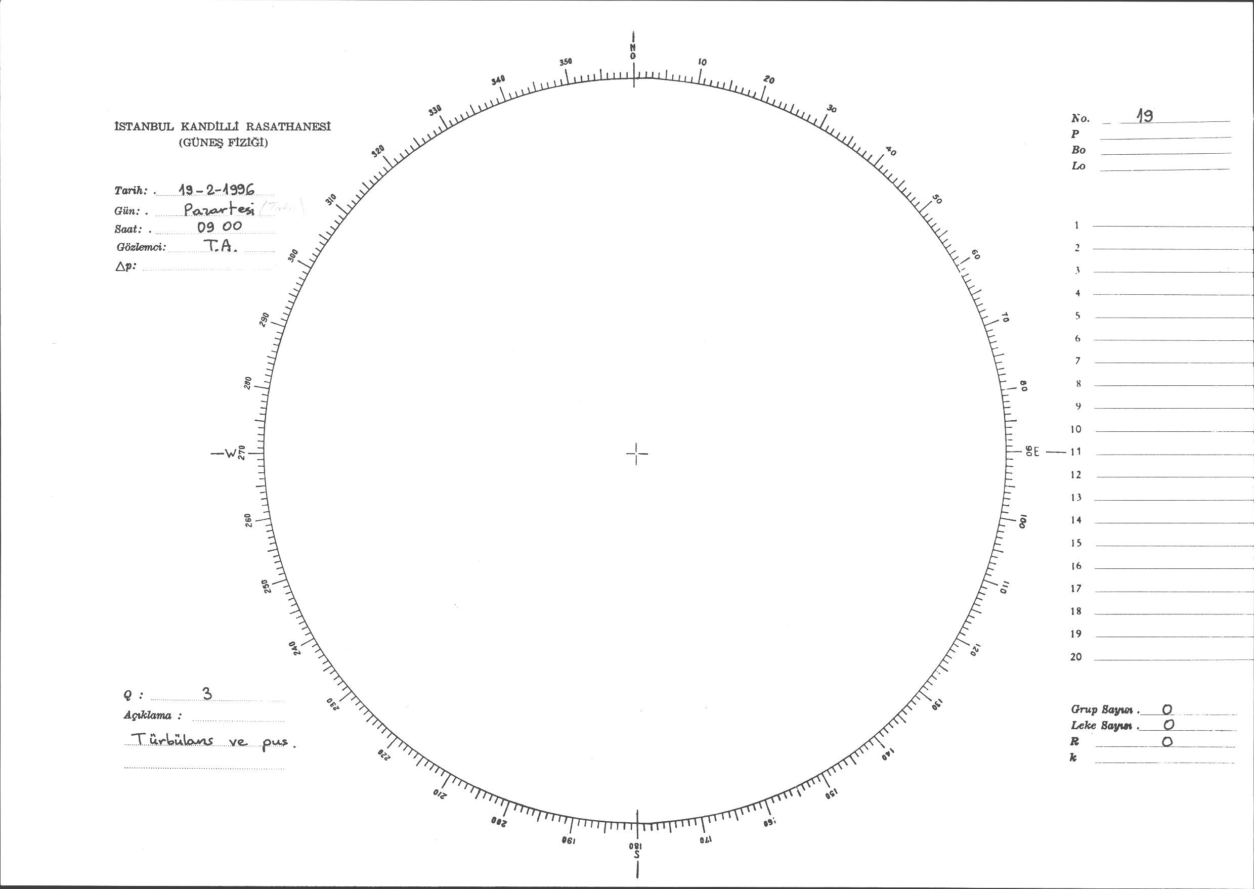 Güneş Lekesi Çizimi - 19.02.1996