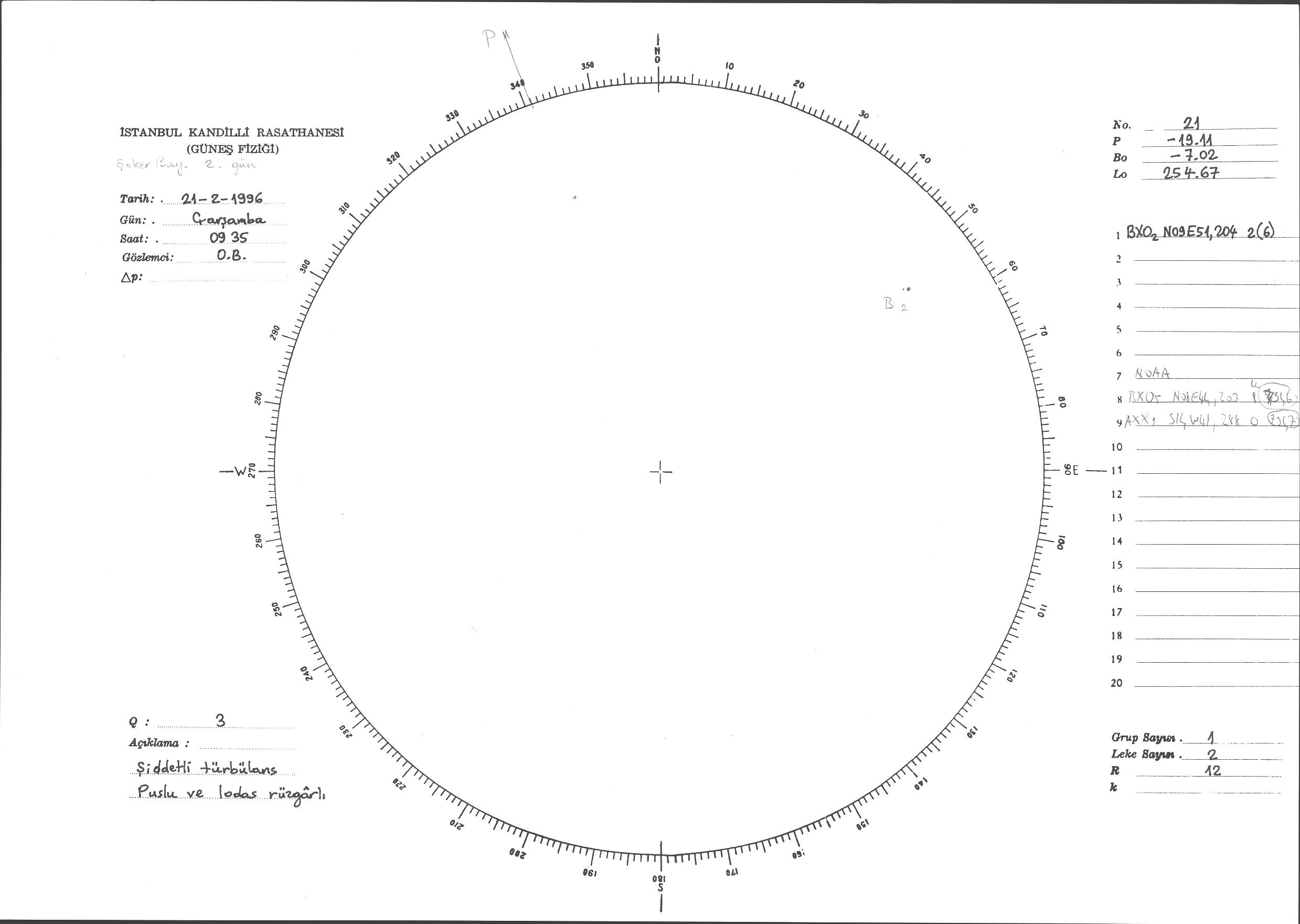 Güneş Lekesi Çizimi - 21.02.1996