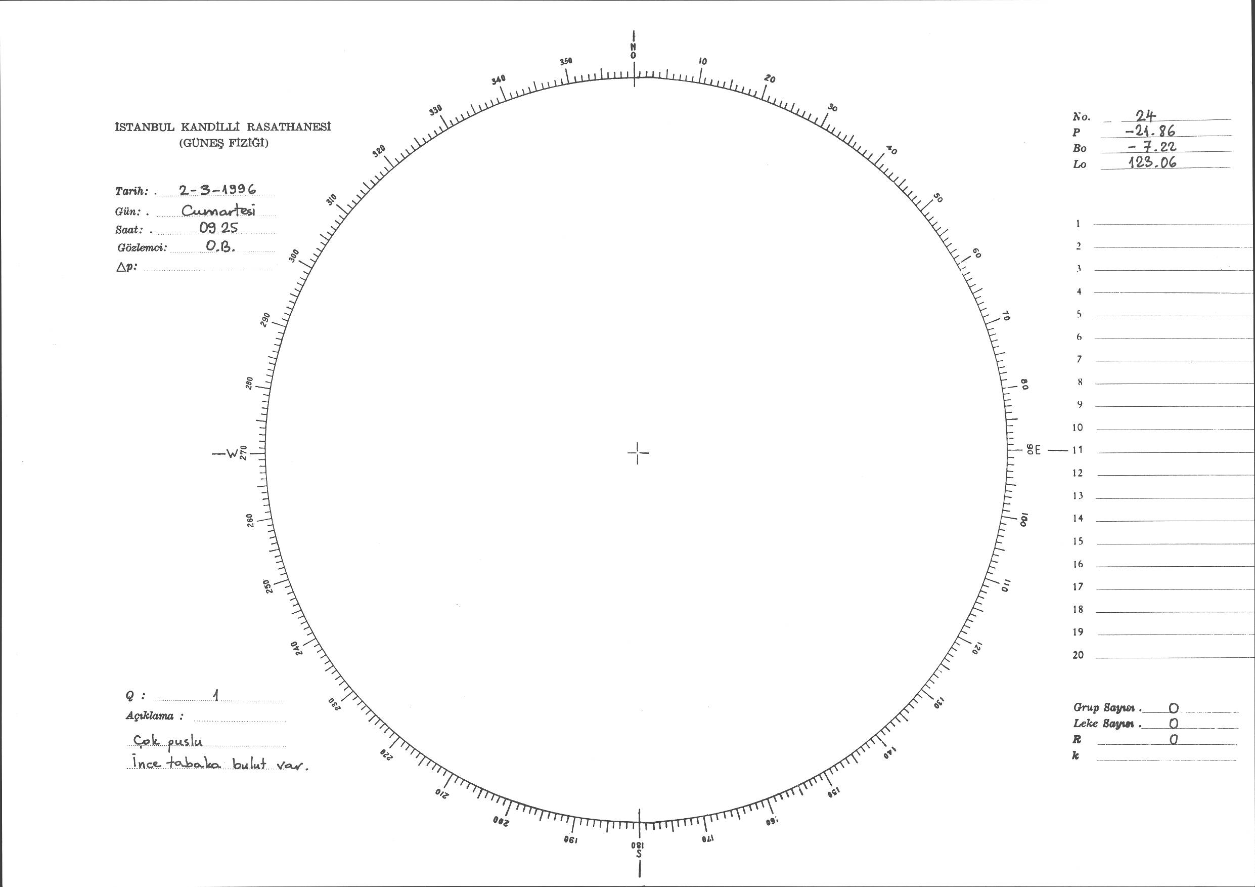 Güneş Lekesi Çizimi - 02.03.1996