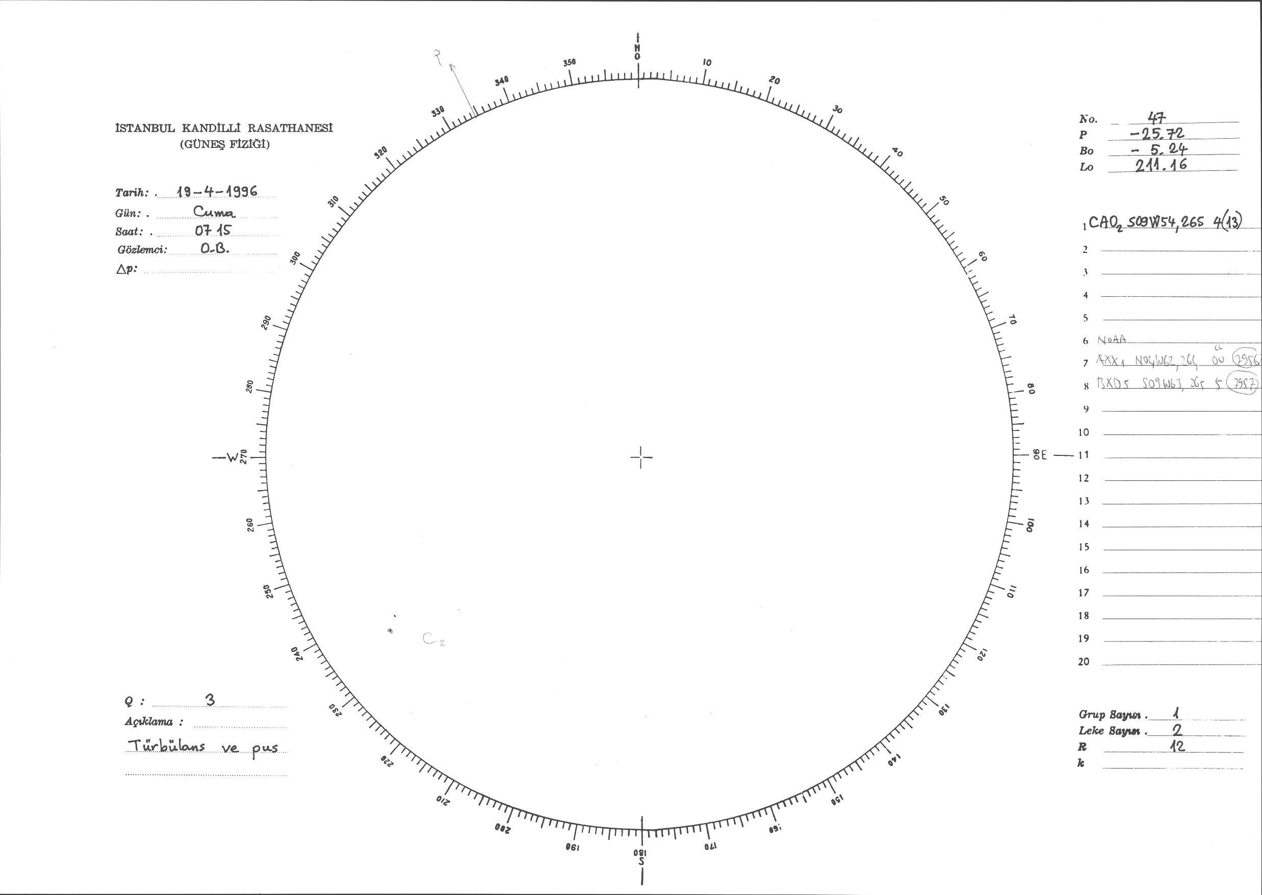 Güneş Lekesi Çizimi - 19.04.1996