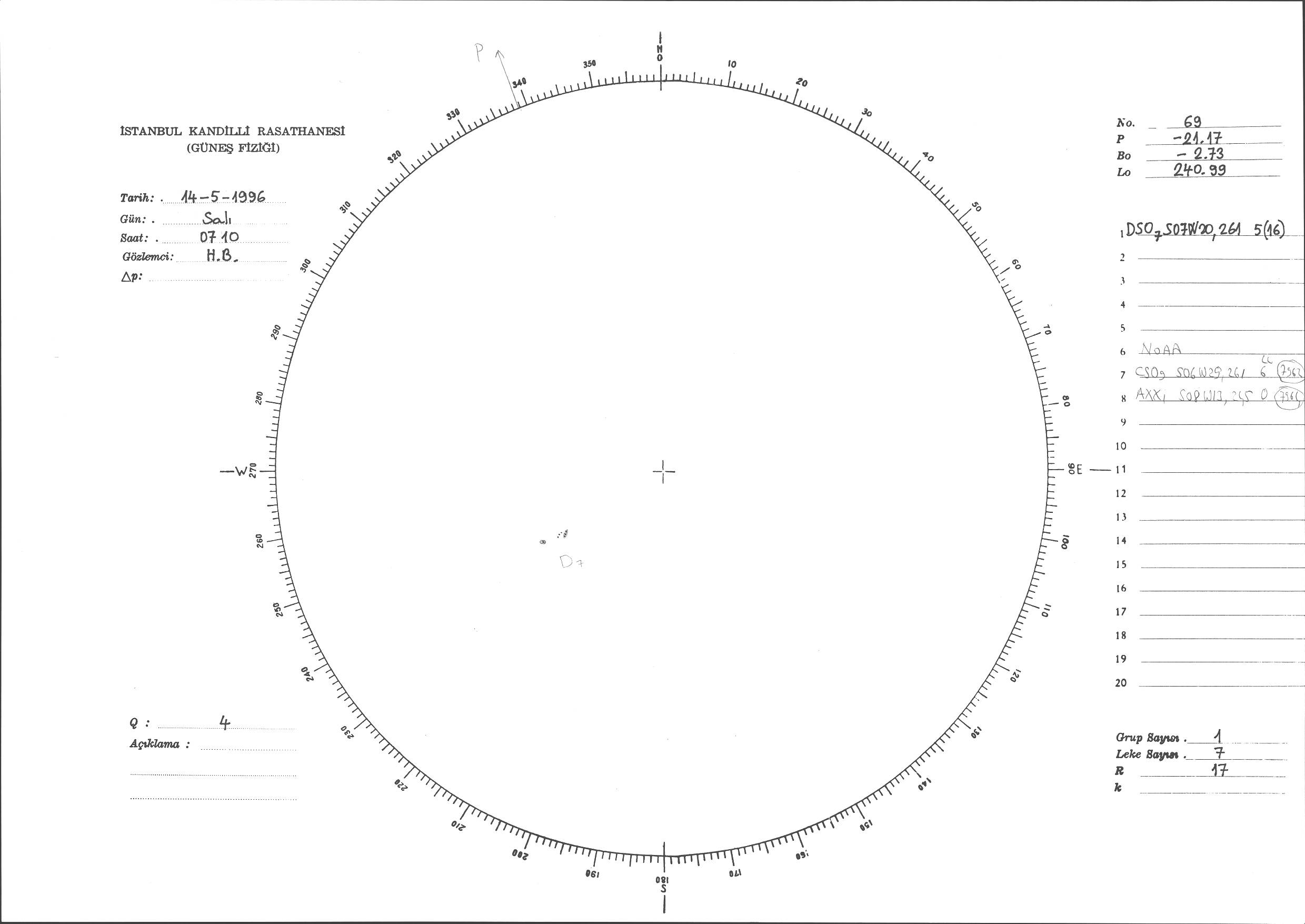 Güneş Lekesi Çizimi - 14.05.1996