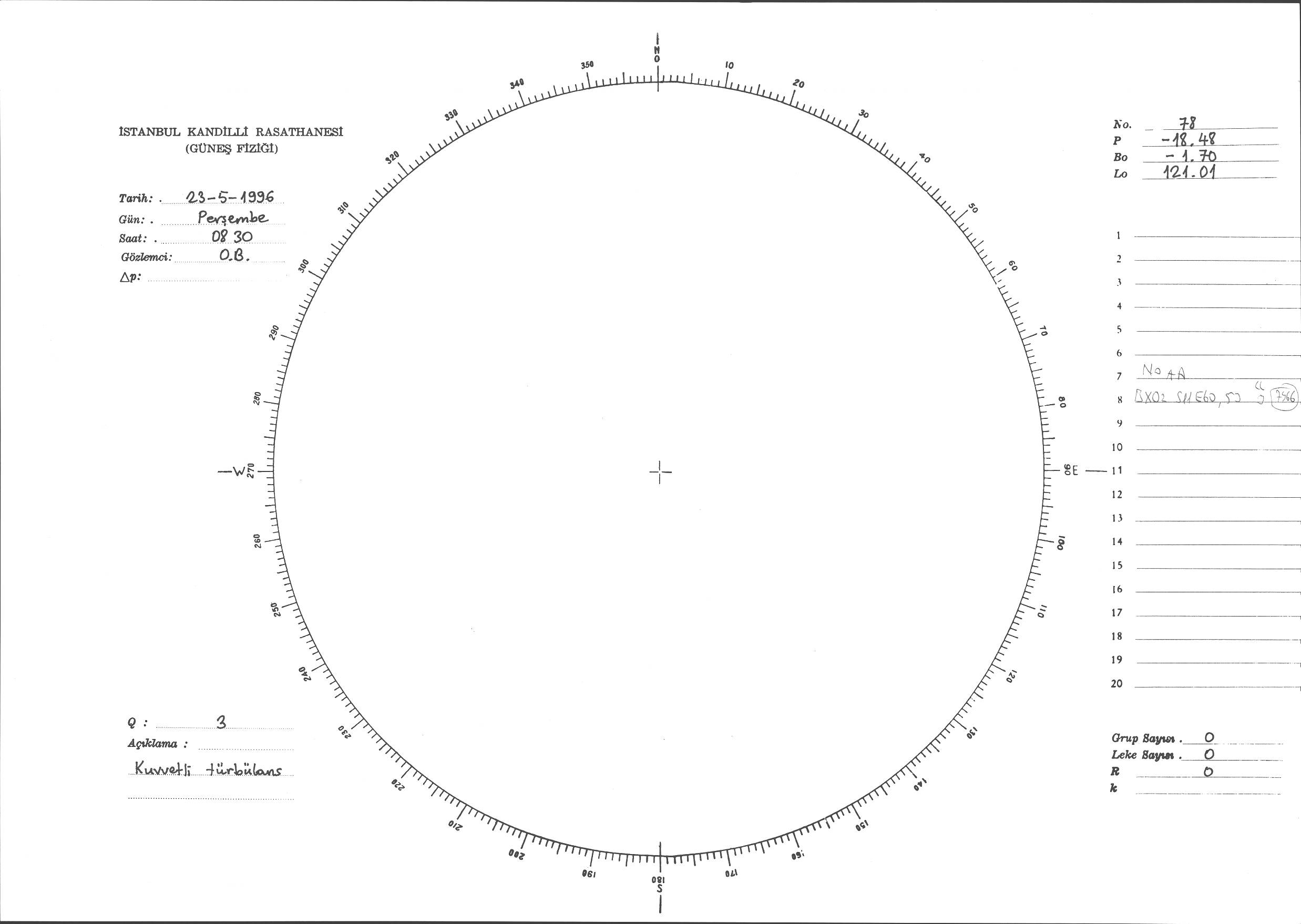 Güneş Lekesi Çizimi - 23.05.1996