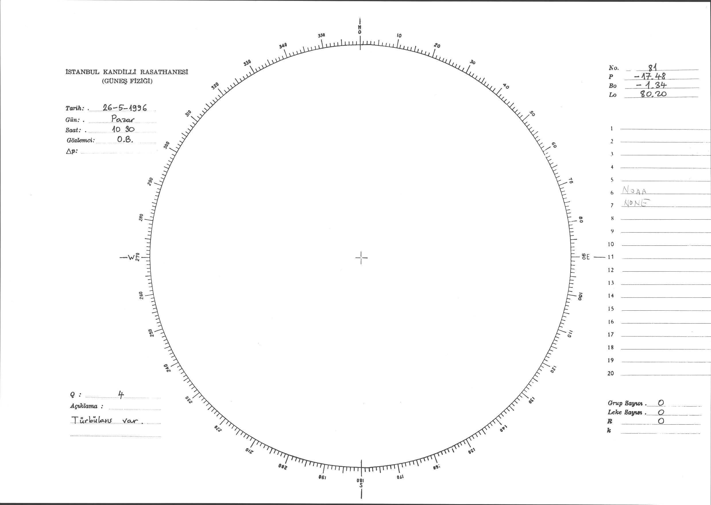 Güneş Lekesi Çizimi - 26.05.1996