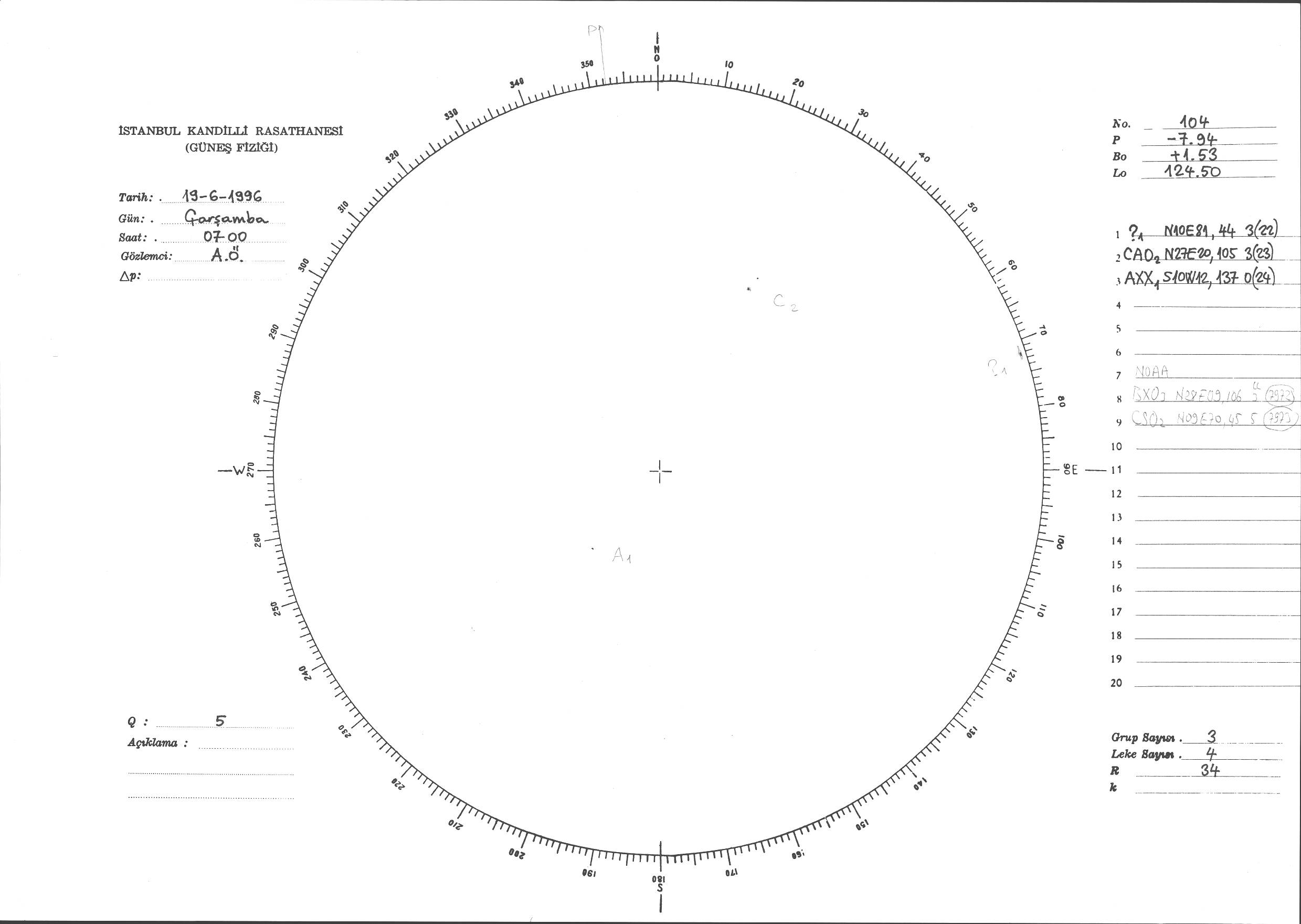 Güneş Lekesi Çizimi - 19.06.1996
