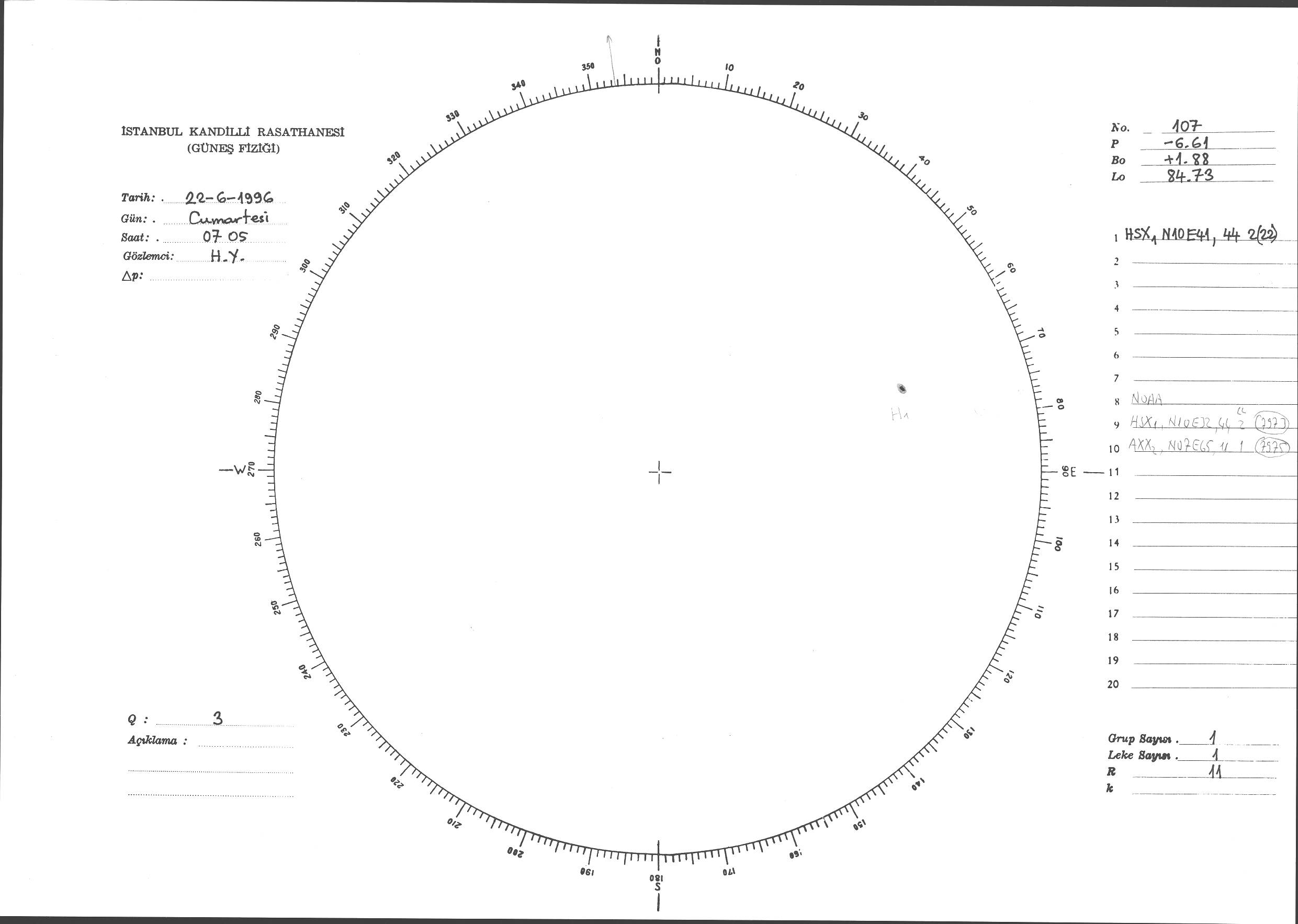 Güneş Lekesi Çizimi - 22.06.1996