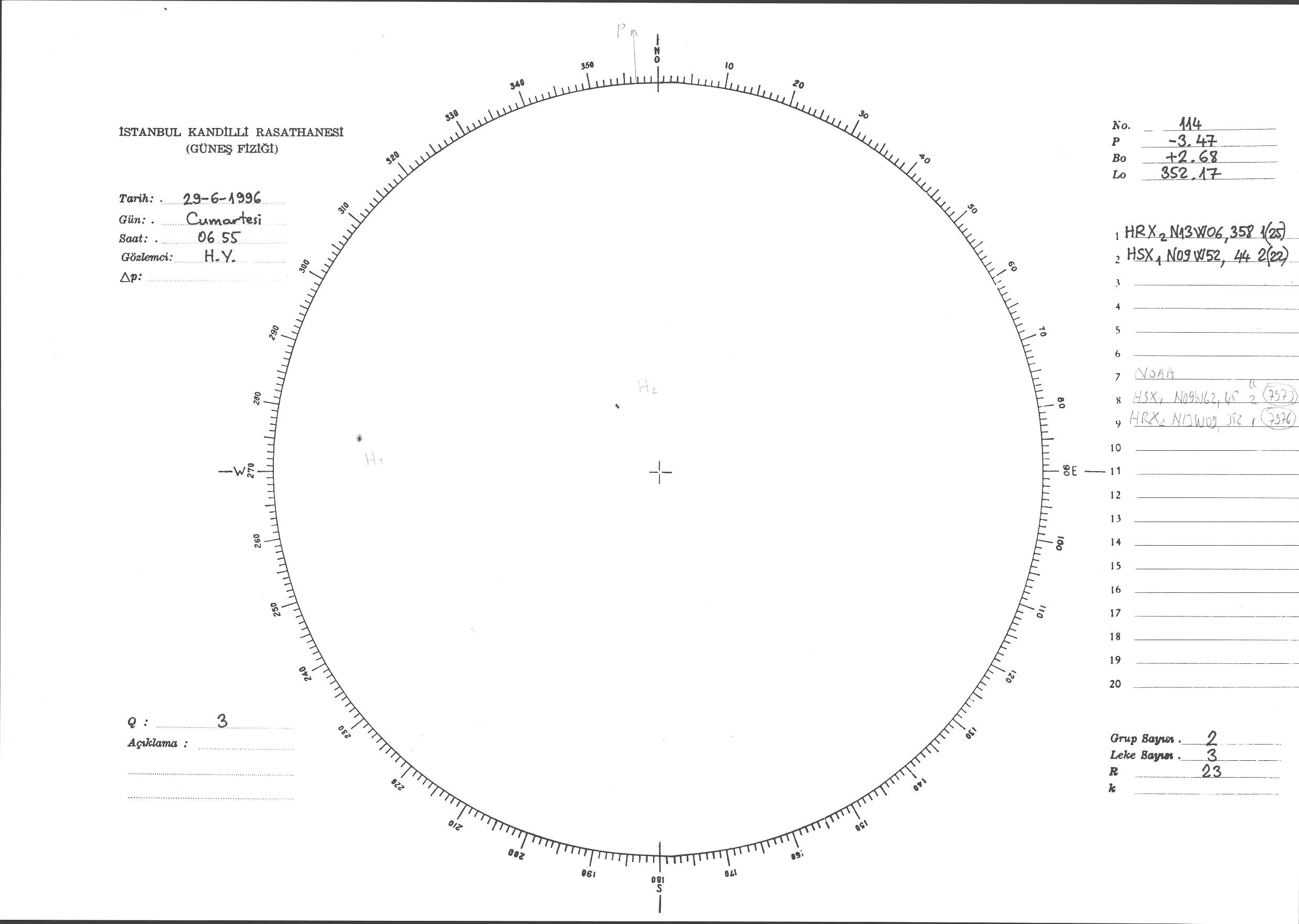 Güneş Lekesi Çizimi - 29.06.1996