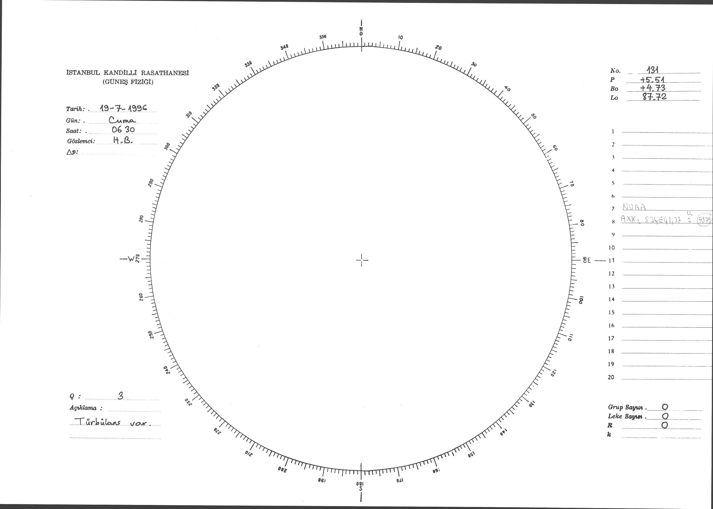 Güneş Lekesi Çizimi - 19.07.1996
