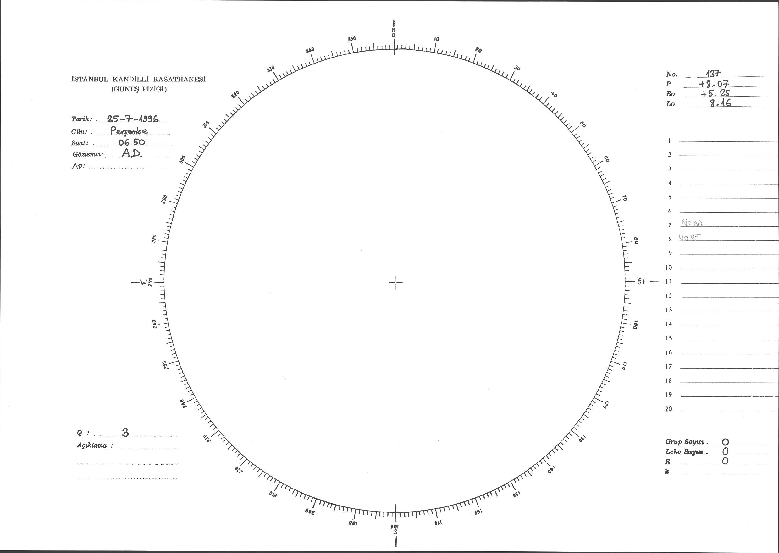 Güneş Lekesi Çizimi - 25.07.1996