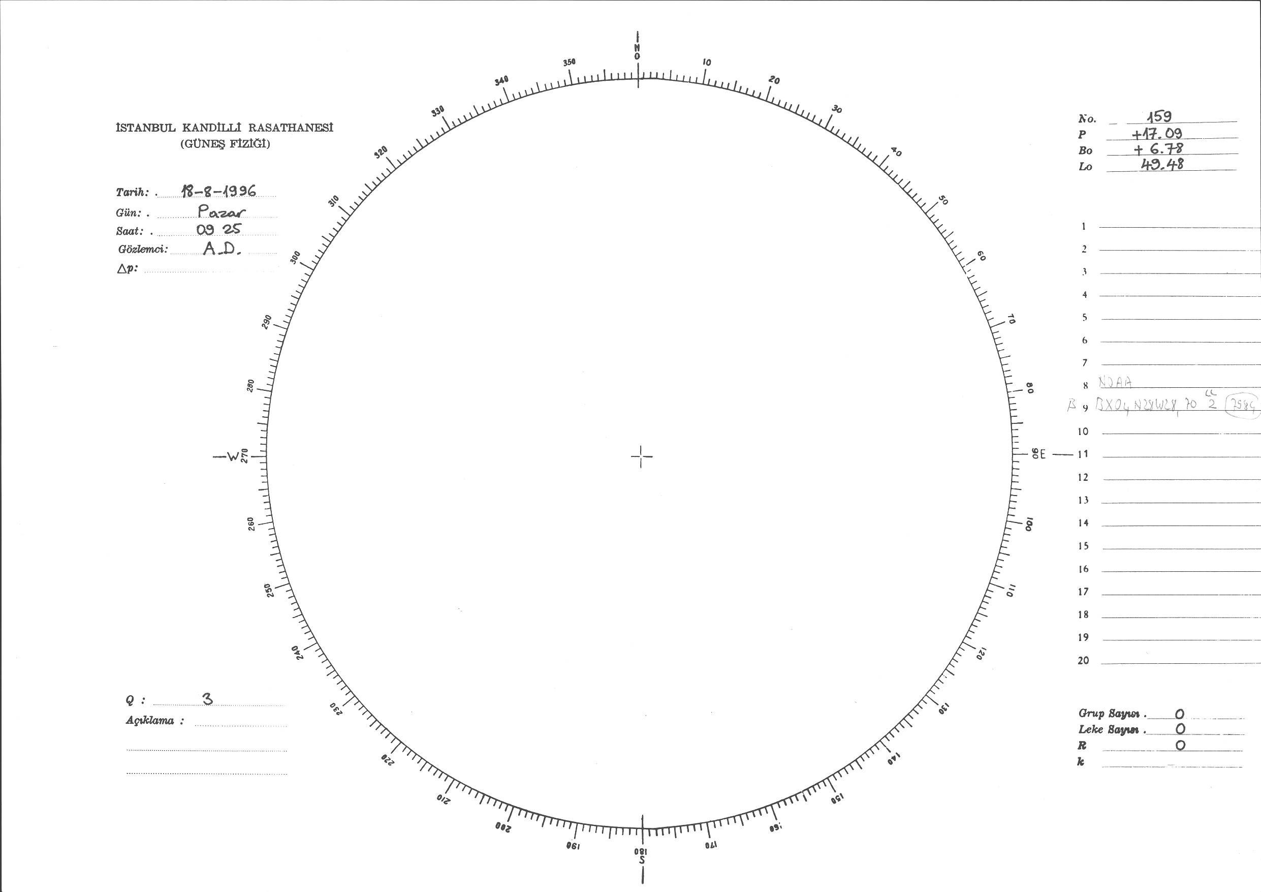 Güneş Lekesi Çizimi - 18.08.1996