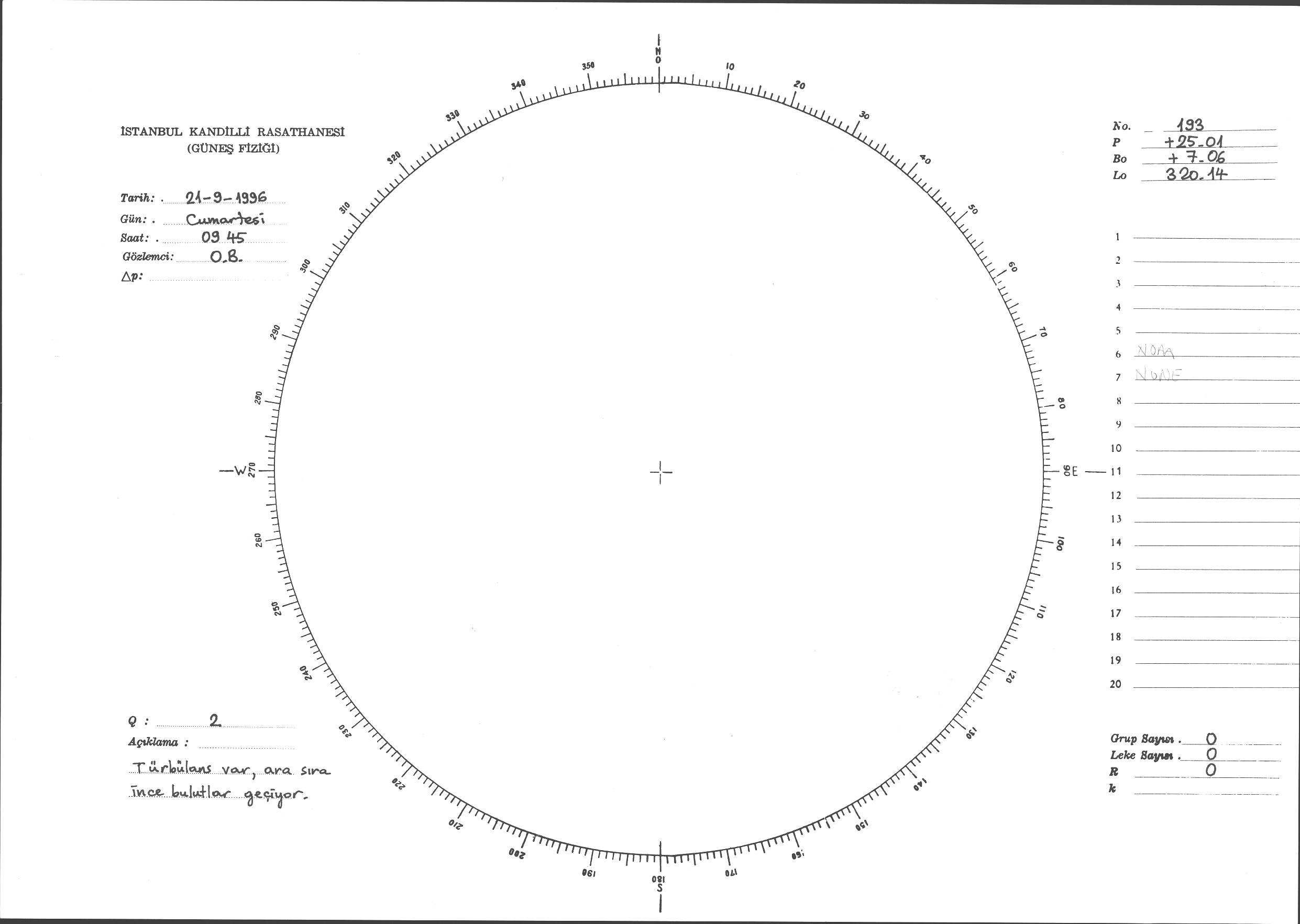 Güneş Lekesi Çizimi - 21.09.1996
