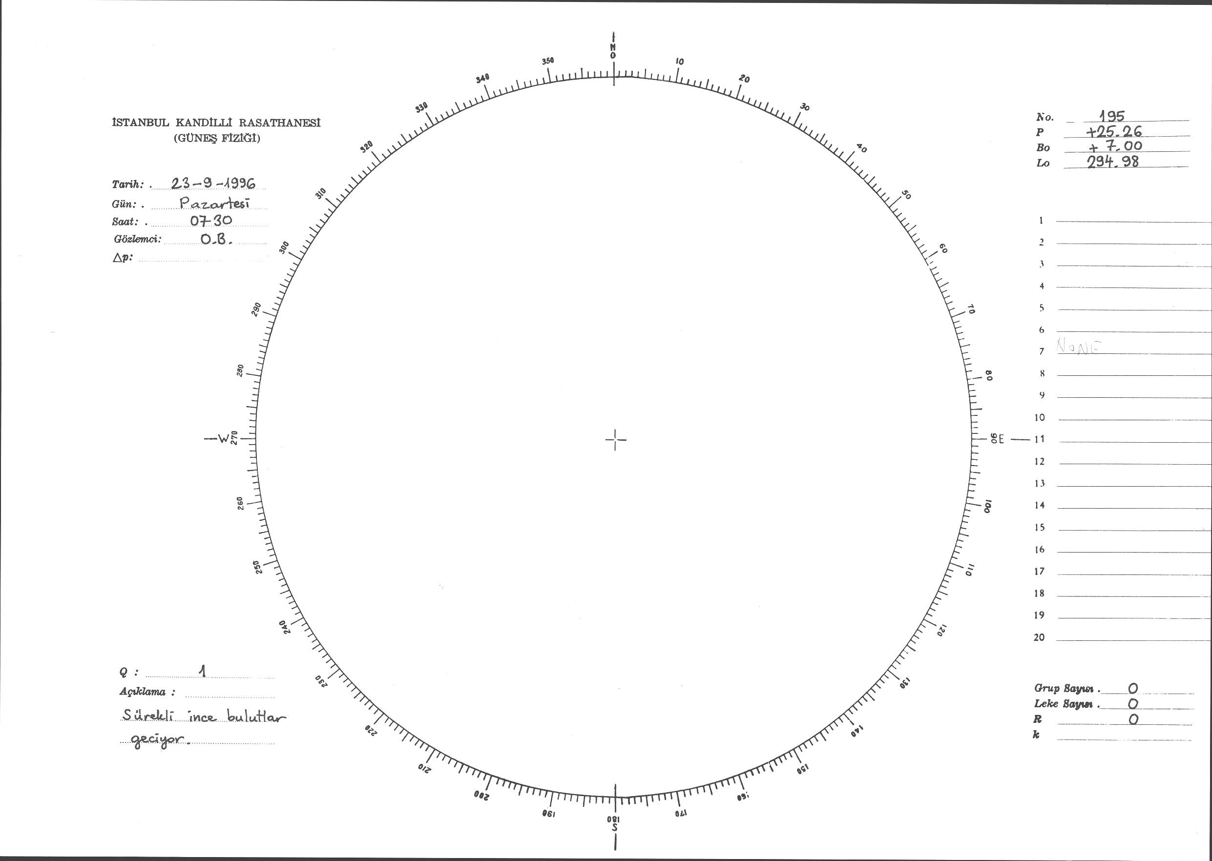 Güneş Lekesi Çizimi - 23.09.1996