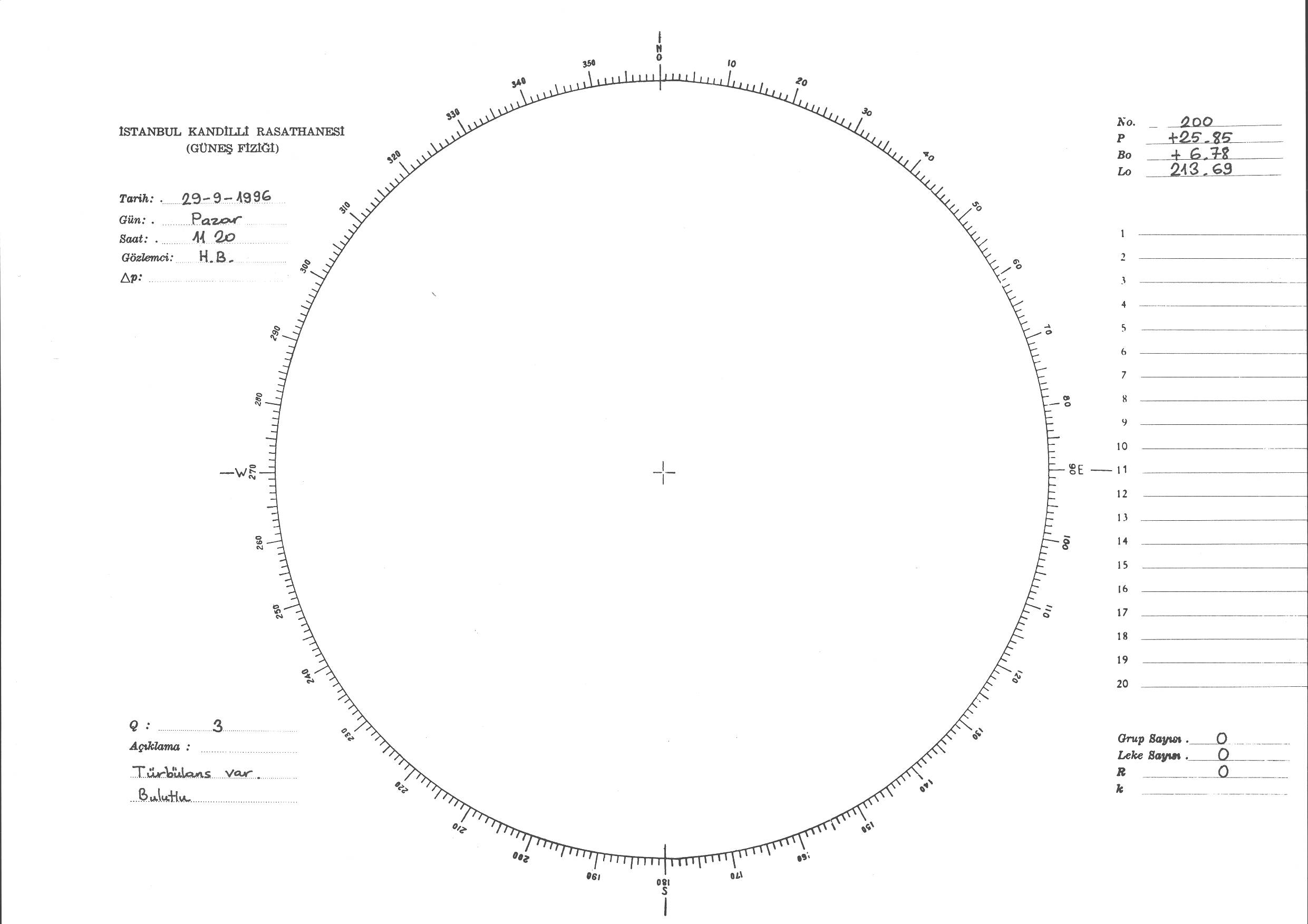 Güneş Lekesi Çizimi - 29.09.1996