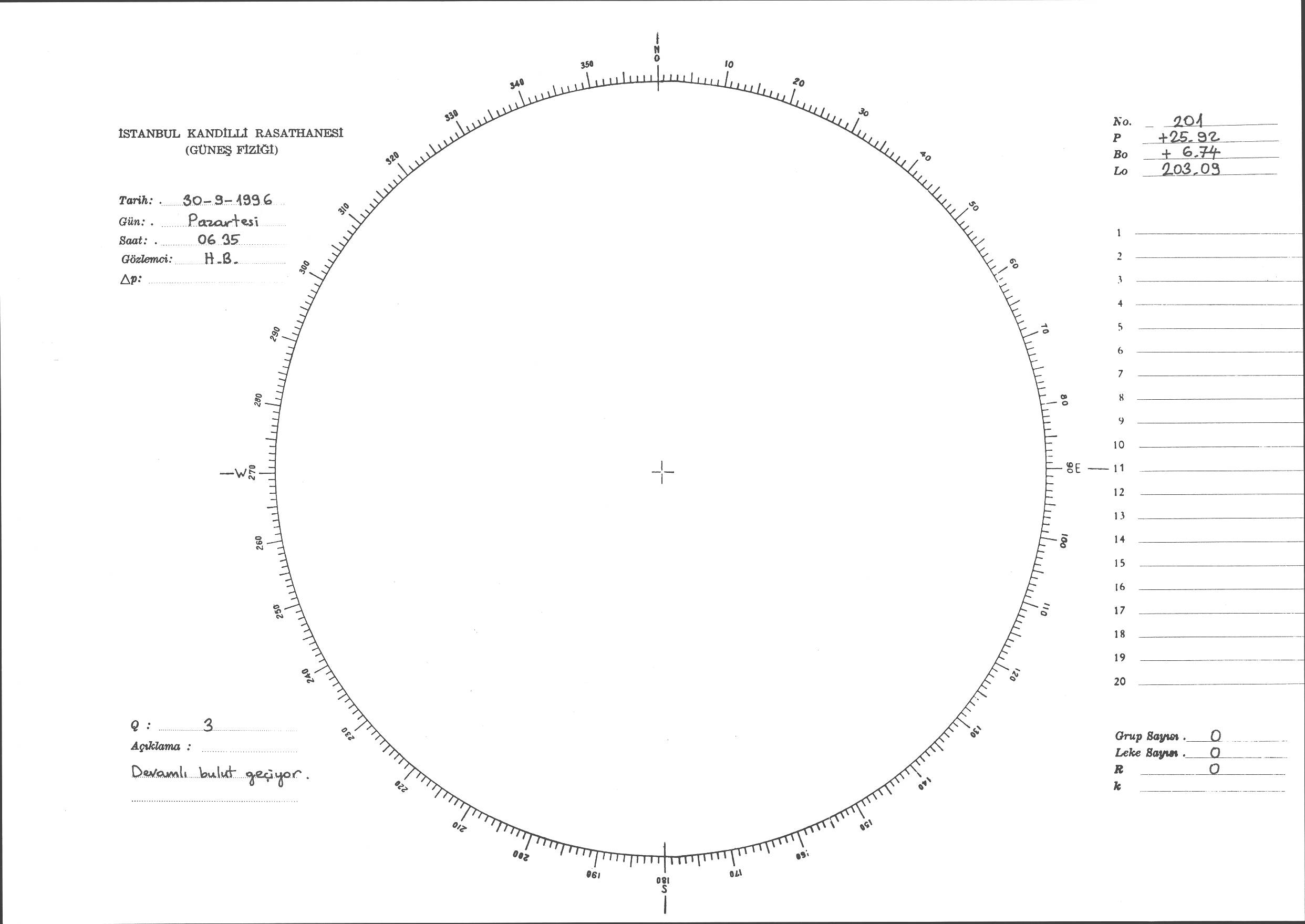 Güneş Lekesi Çizimi - 30.09.1996