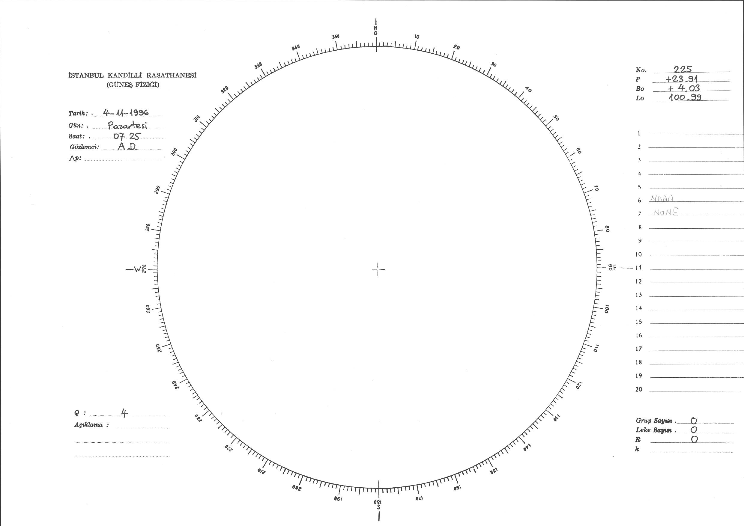 Güneş Lekesi Çizimi - 04.11.1996