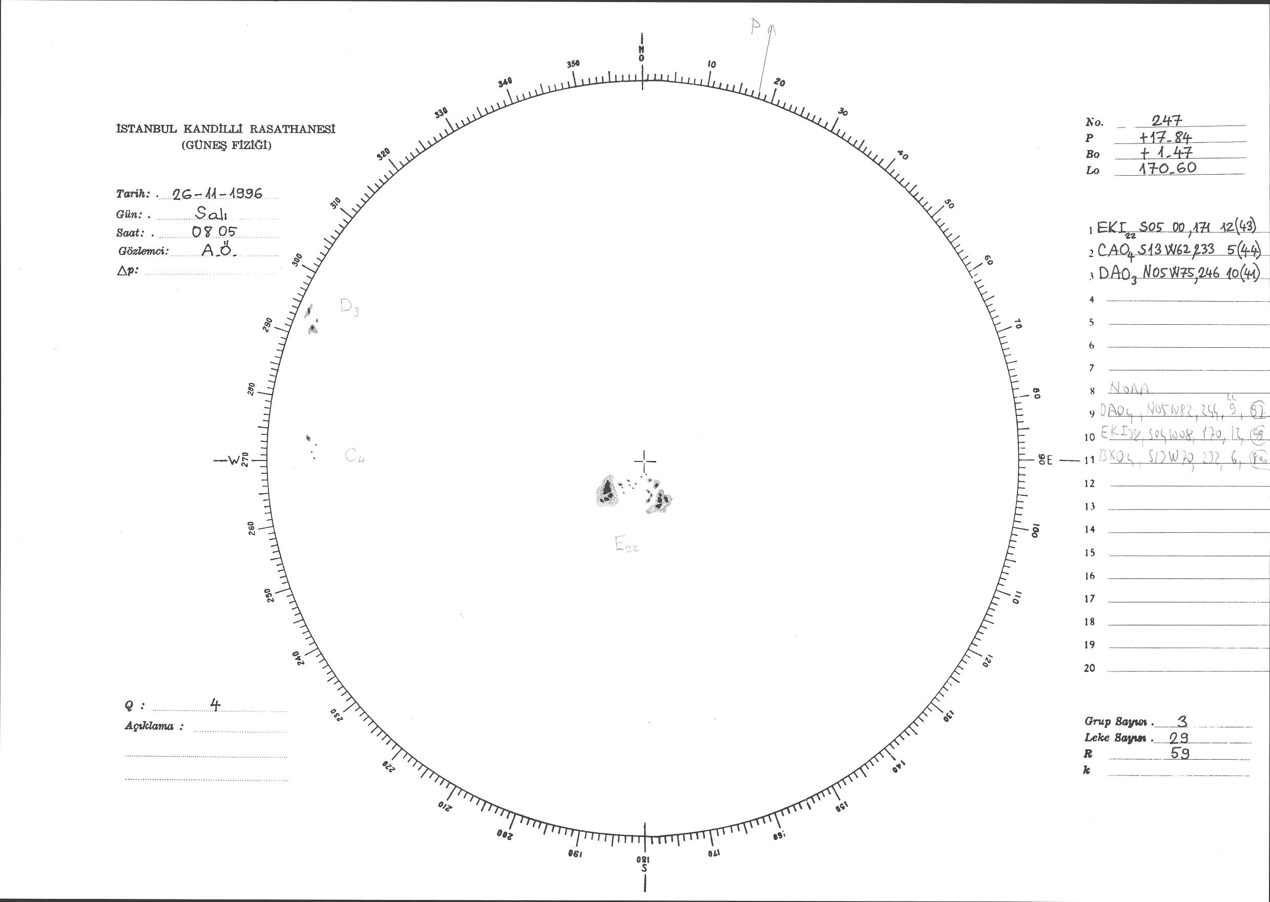 Güneş Lekesi Çizimi - 26.11.1996