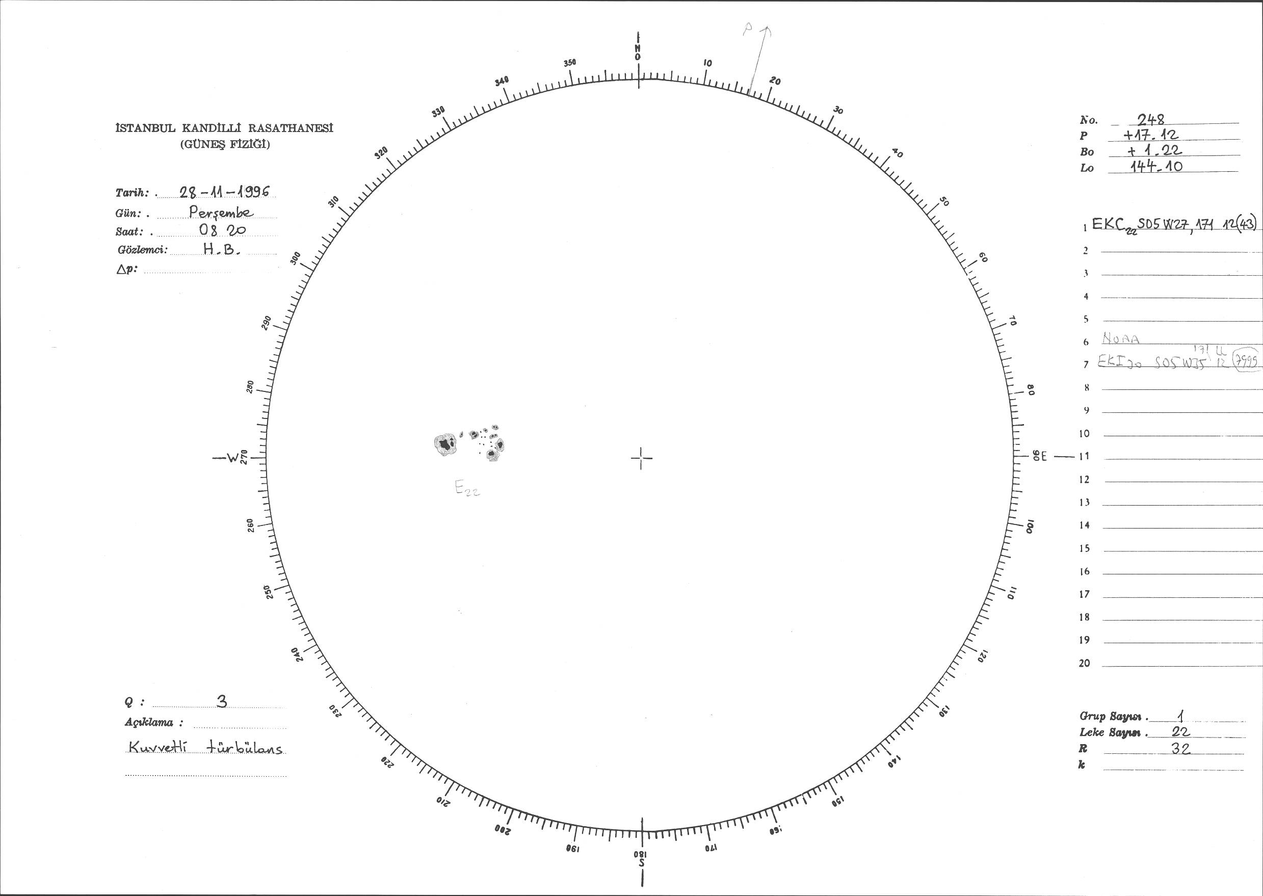 Güneş Lekesi Çizimi - 28.11.1996
