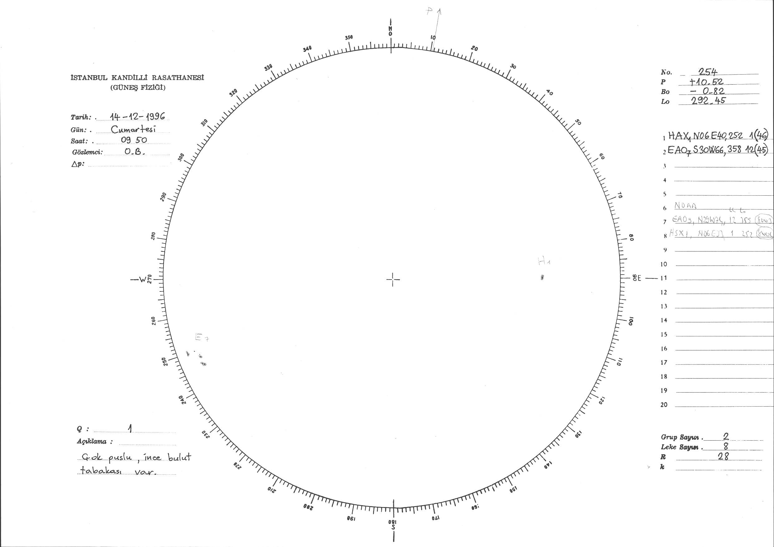 Güneş Lekesi Çizimi - 14.12.1996