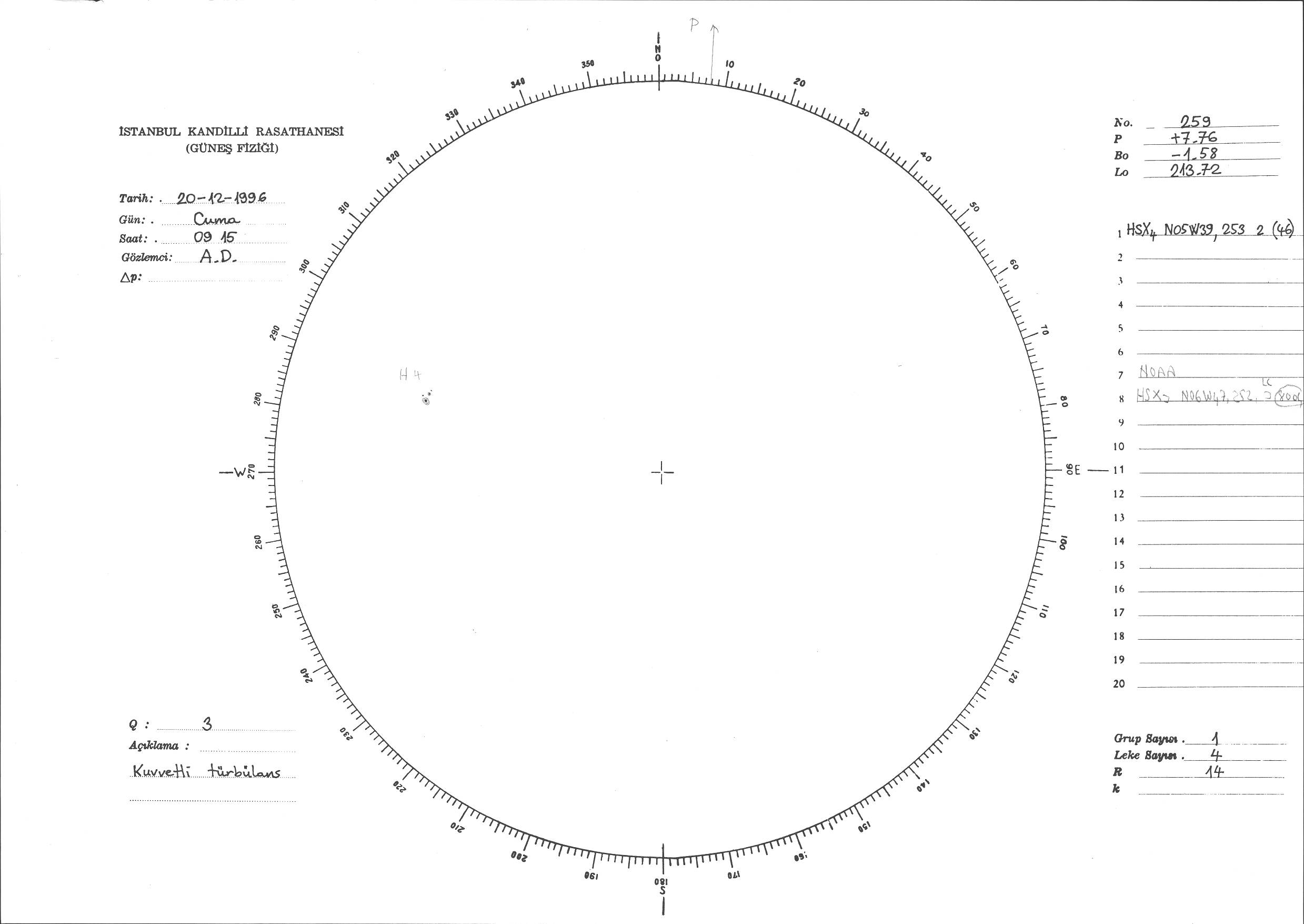 Güneş Lekesi Çizimi - 20.12.1996
