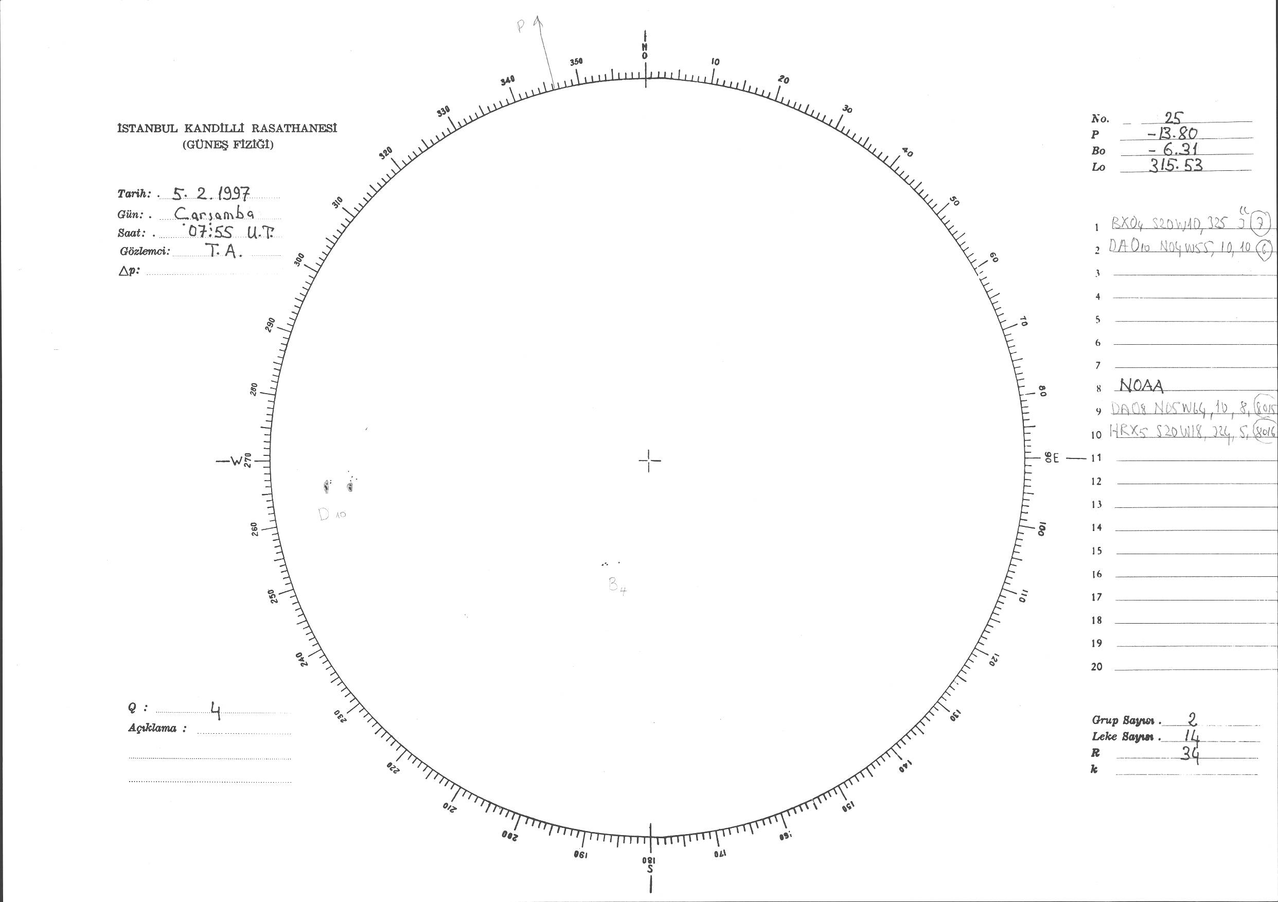 Güneş Lekesi Çizimi - 05.02.1997