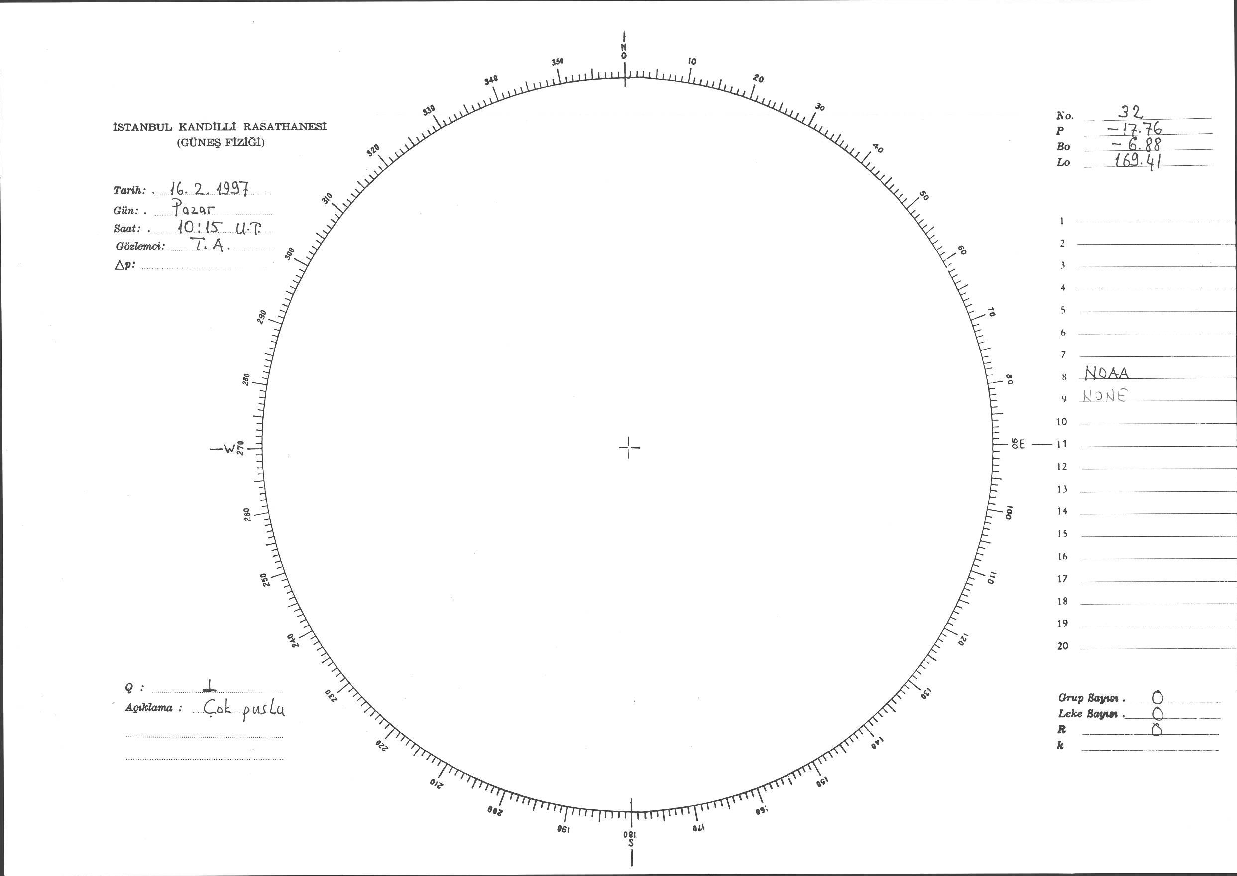Güneş Lekesi Çizimi - 16.02.1997