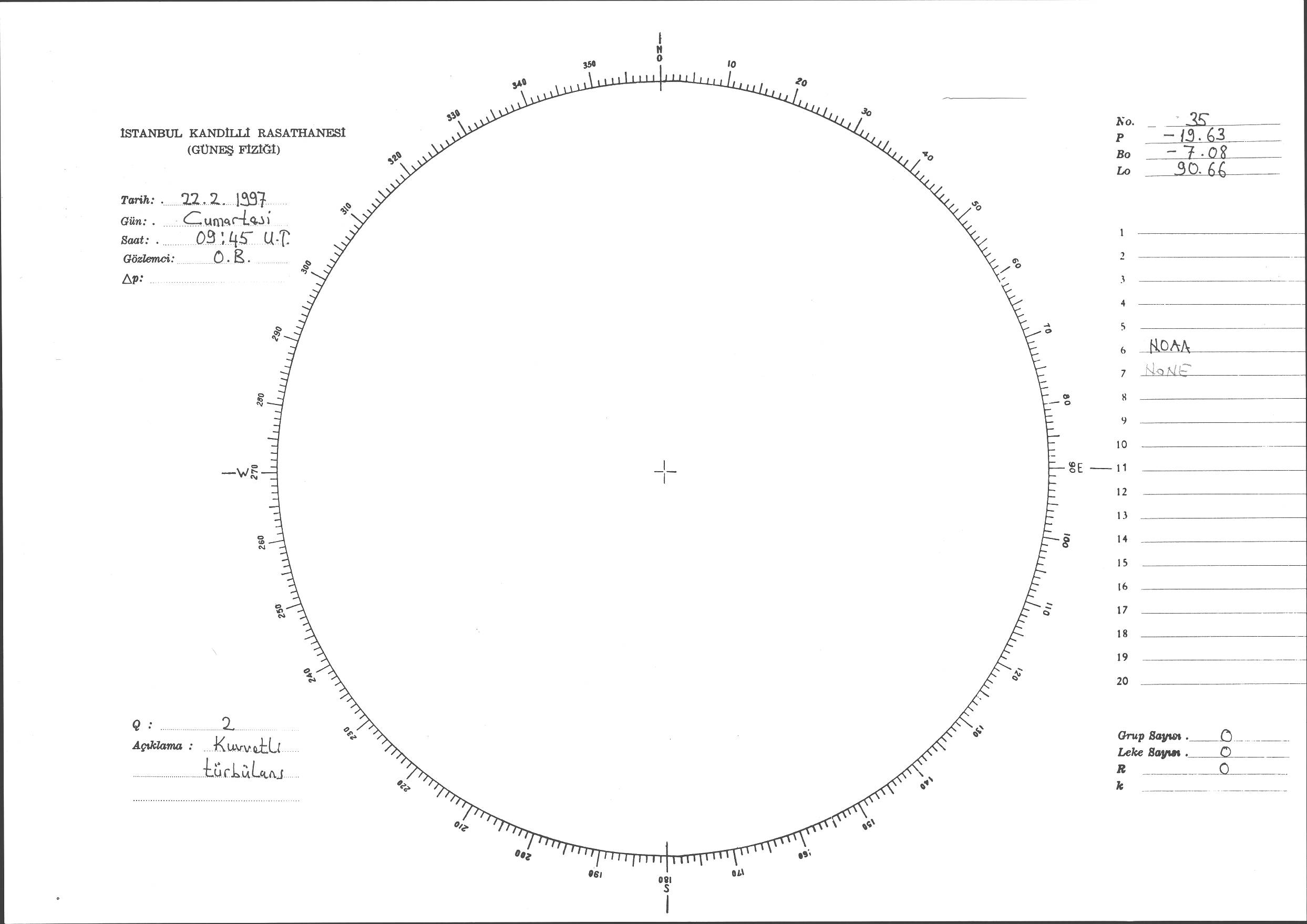 Güneş Lekesi Çizimi - 22.02.1997