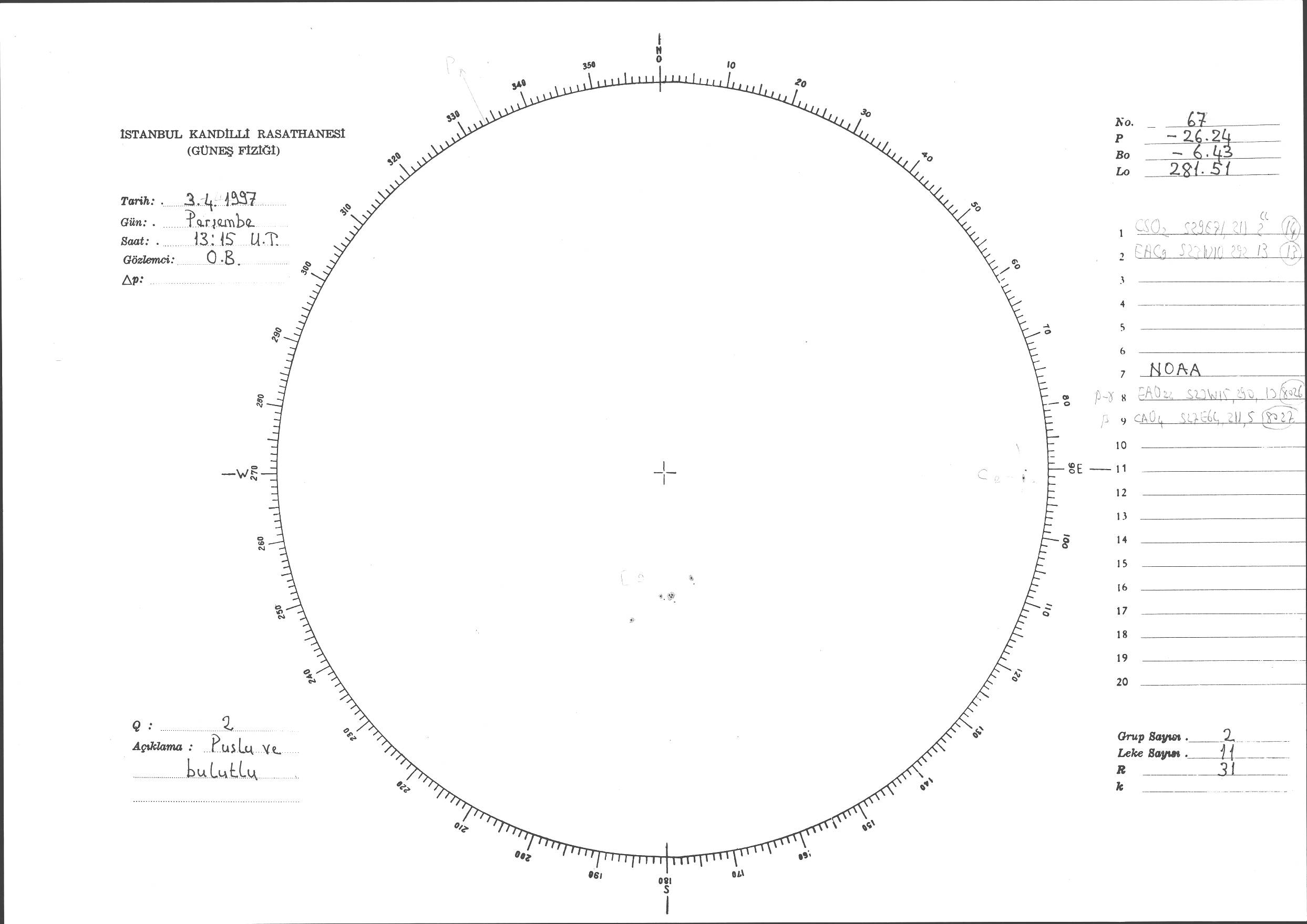 Güneş Lekesi Çizimi - 03.04.1997