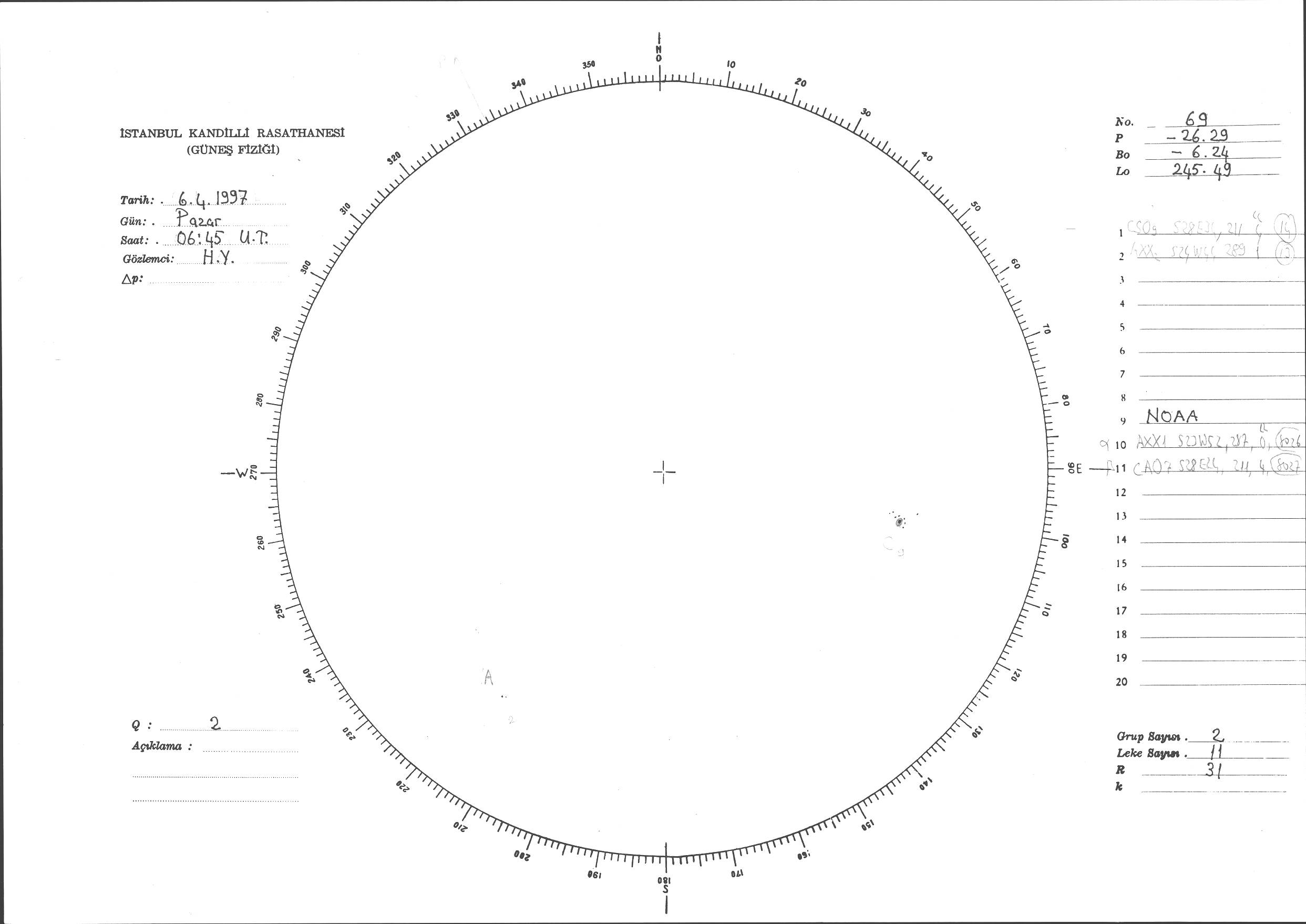 Güneş Lekesi Çizimi - 06.04.1997