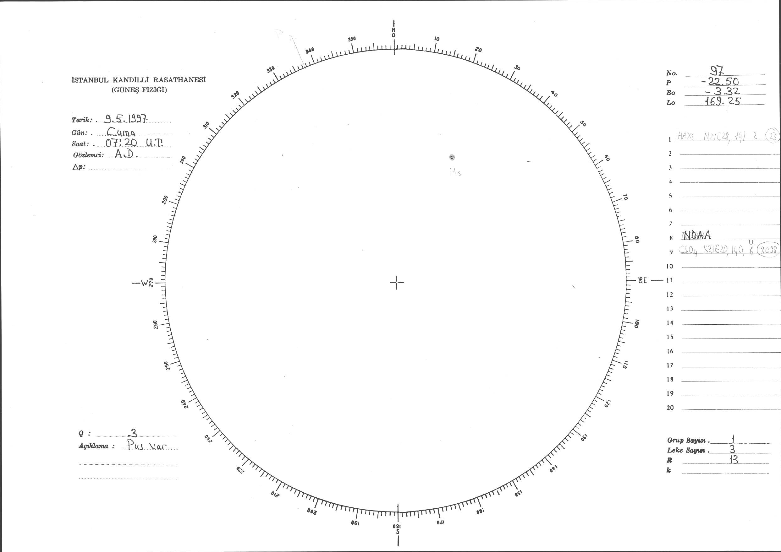 Güneş Lekesi Çizimi - 09.05.1997