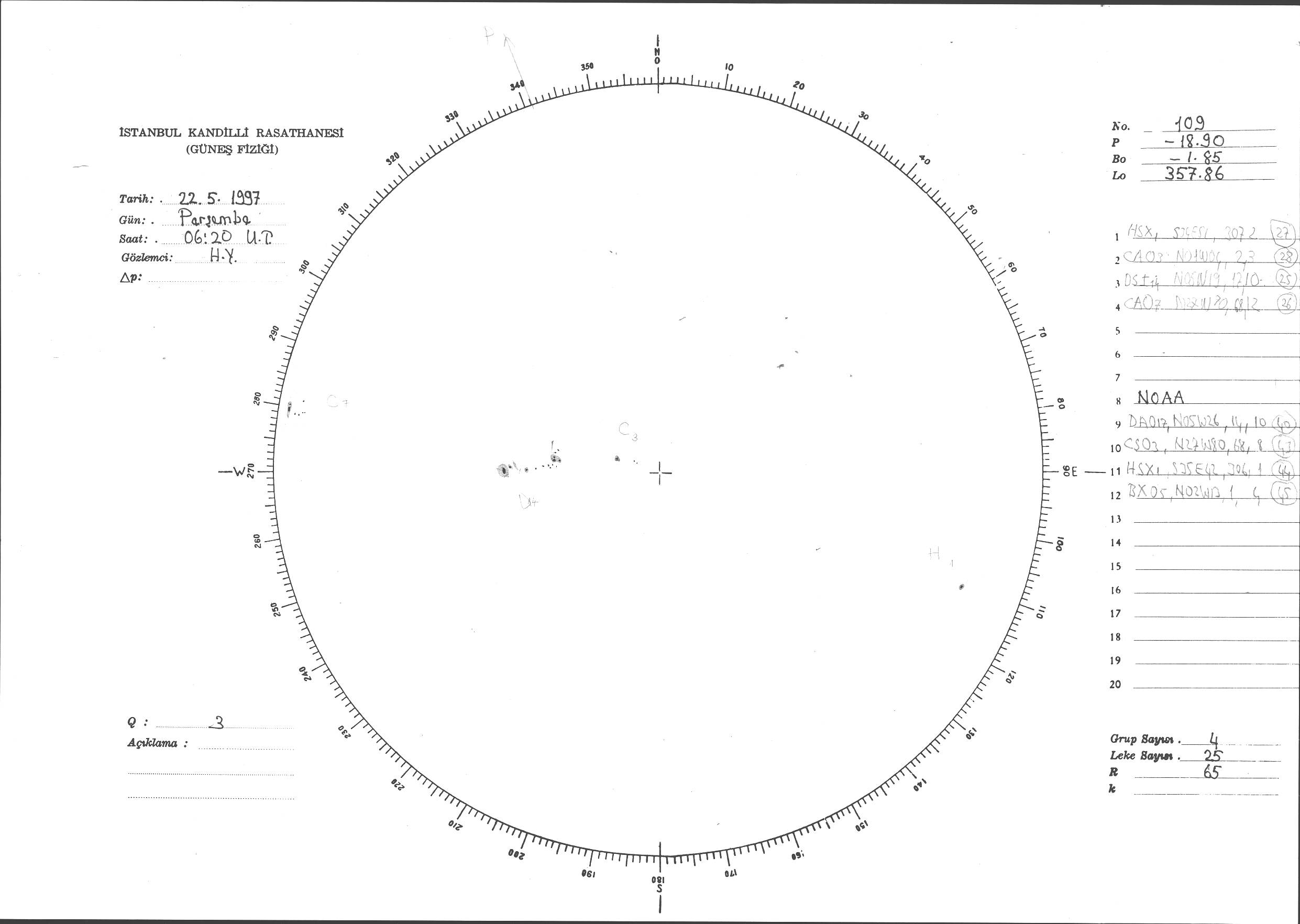 Güneş Lekesi Çizimi - 22.05.1997